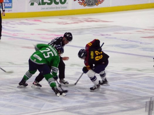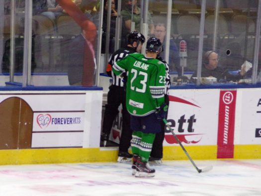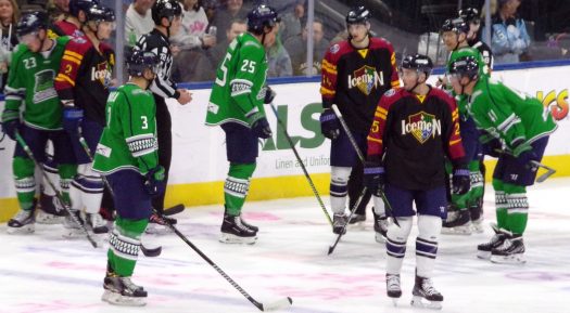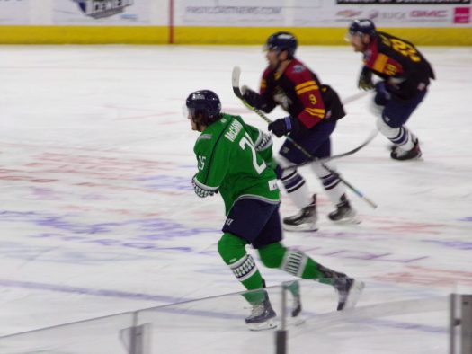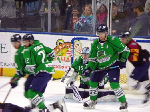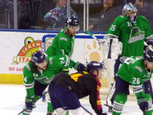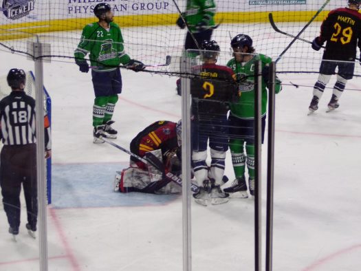 The Icemen got off to a good start in the first period as they had some extra motivation for this rivalry game. The Icemen had some sustained offensive zone pressure early which helped them get the first goal of the game. Jacksonville’s Brendan Harris passed the puck to Ara Nazarian in the slot, and he buried the quick wrist shot to take the early lead.