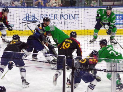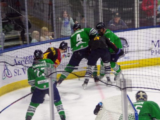 A little over halfway throughout the third period each team skated 4-on-4 as the teams were given matching minor penalties. While having the extra ice, Jacksonville was able to convert as Luke Lynch found Austin McEneny in the slot and he buried a quick wrist shot to go up by a commanding two-goal lead.
