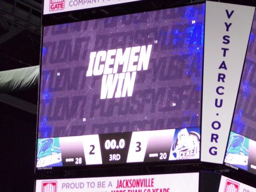 Florida would pull their goaltender to get an extra attacker out, but it would not matter as Jacksonville was stellar defensively to close out the game. The Icemen won 3-2 while being outshot 30-20.
