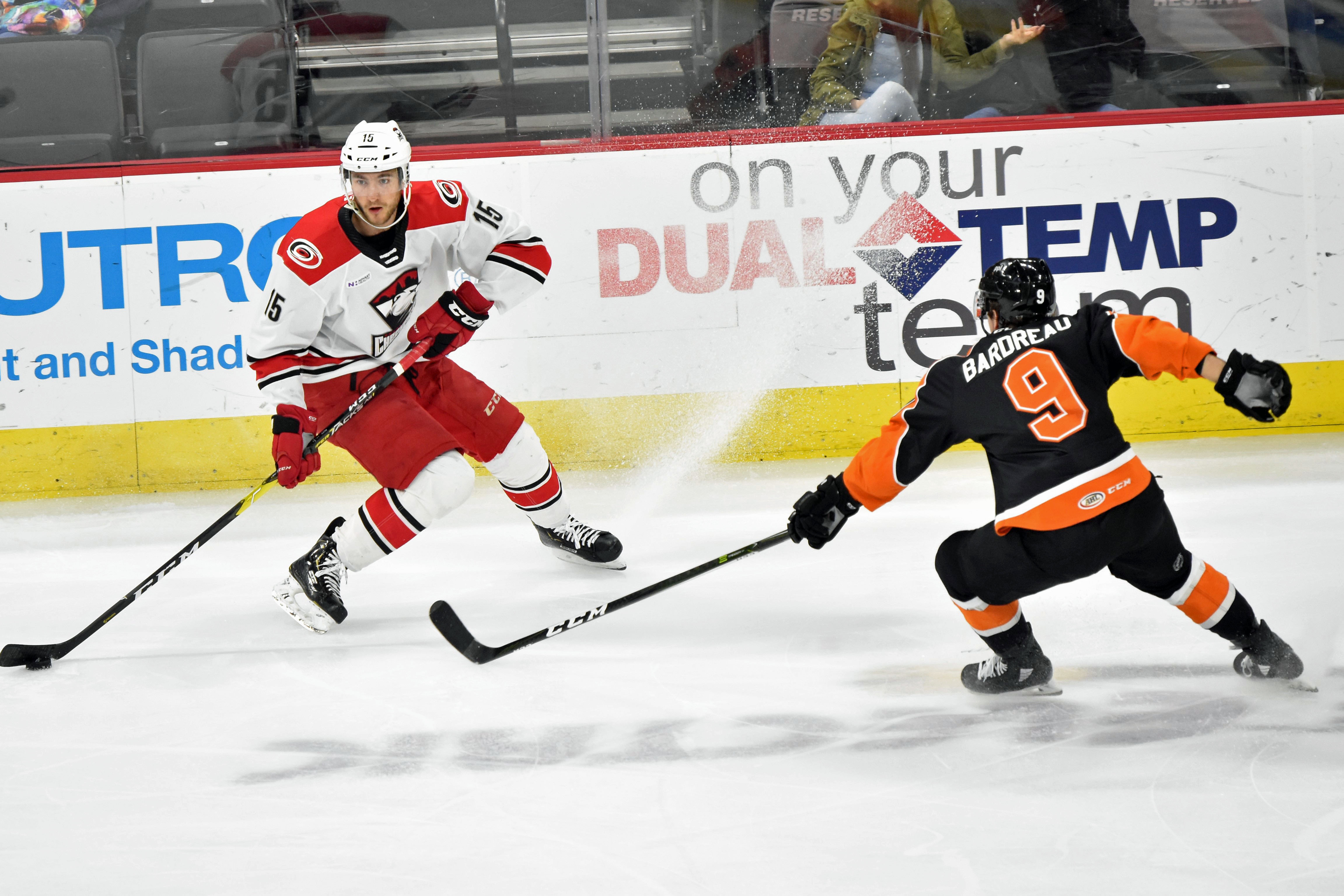 While Nedeljkovic proved to be a brick wall between the pipes, Charlotte’s offensive attack pulled their weight in the win as well. Nick Schilkey continued his breakout campaign by opening the scoring in the first with a beautiful finish off a slick feed from Morgan Geekie and then capping things off with a power-play strike in the third for his third multi-goal game of the season.