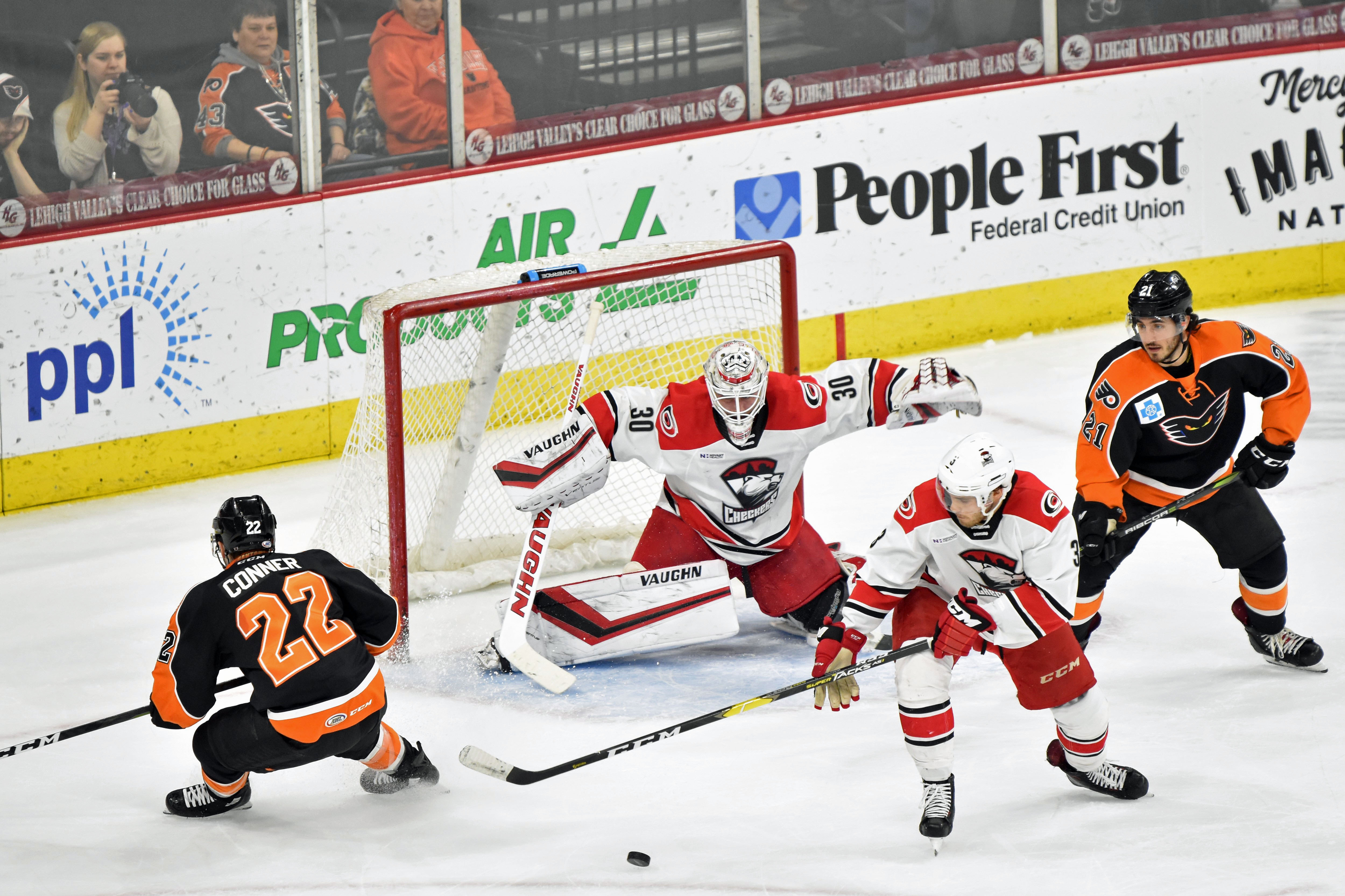 After falling just short in the weekend’s first meeting, the Checkers left no doubt in their rematch with Lehigh Valley, pounding the Phantoms 4-0 behind a shutout performance from Alex Nedeljkovic.