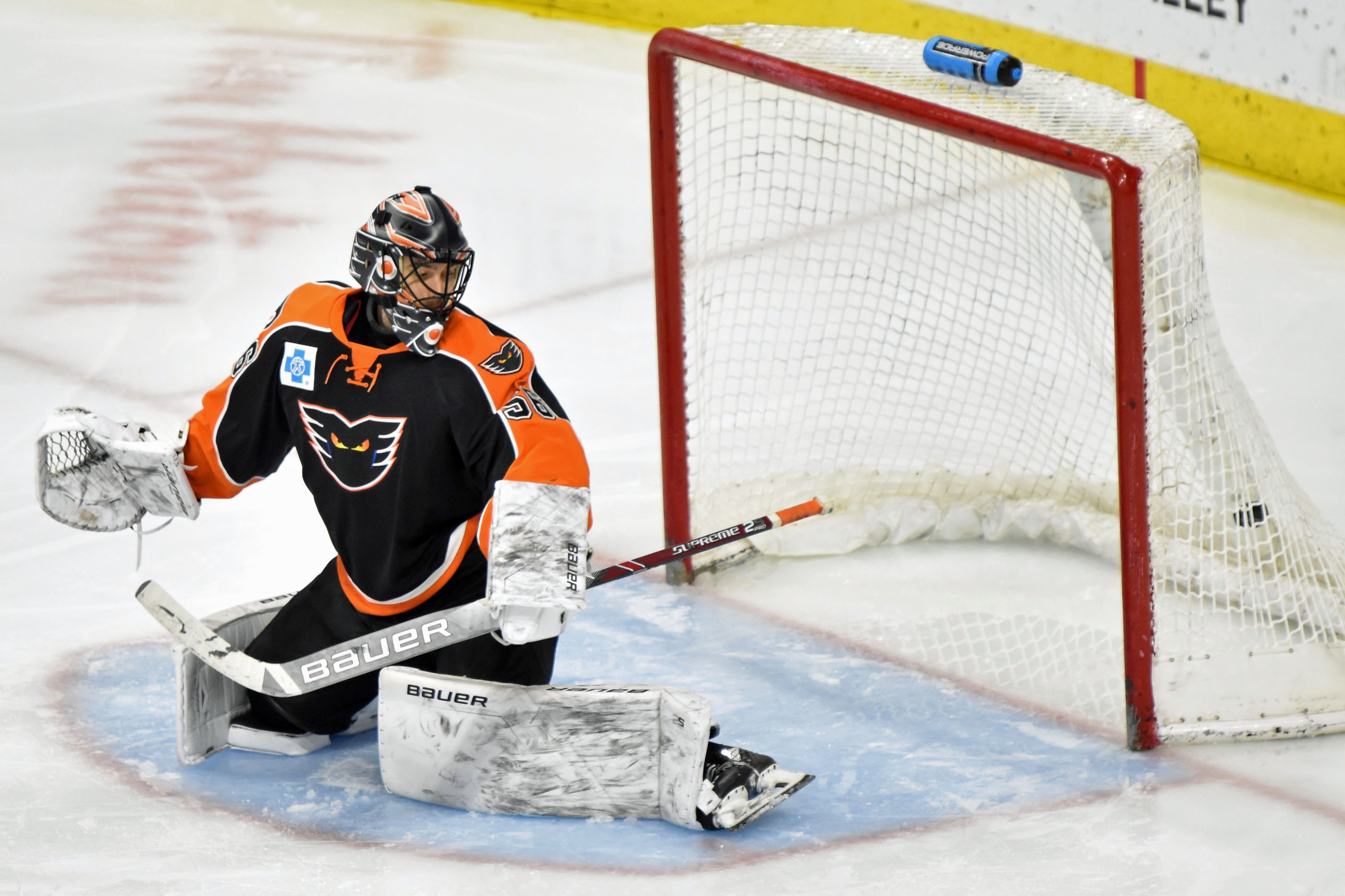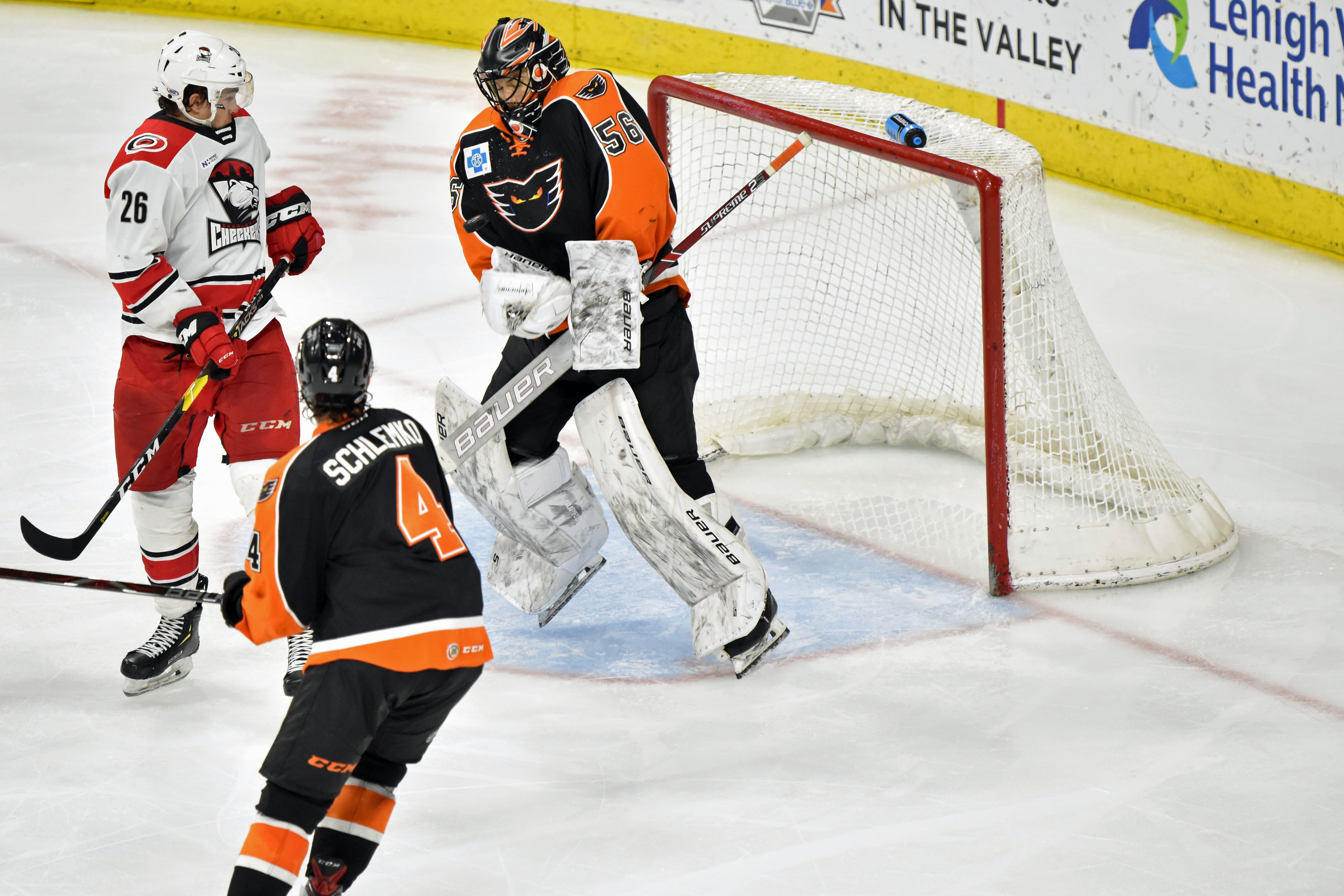 The netminder stood tall on all 22 shots he faced – including helping kill off six man advantages – to frustrate a powerful Phantoms offense and pick up his third shutout of the season, as well as extending his league wins lead.