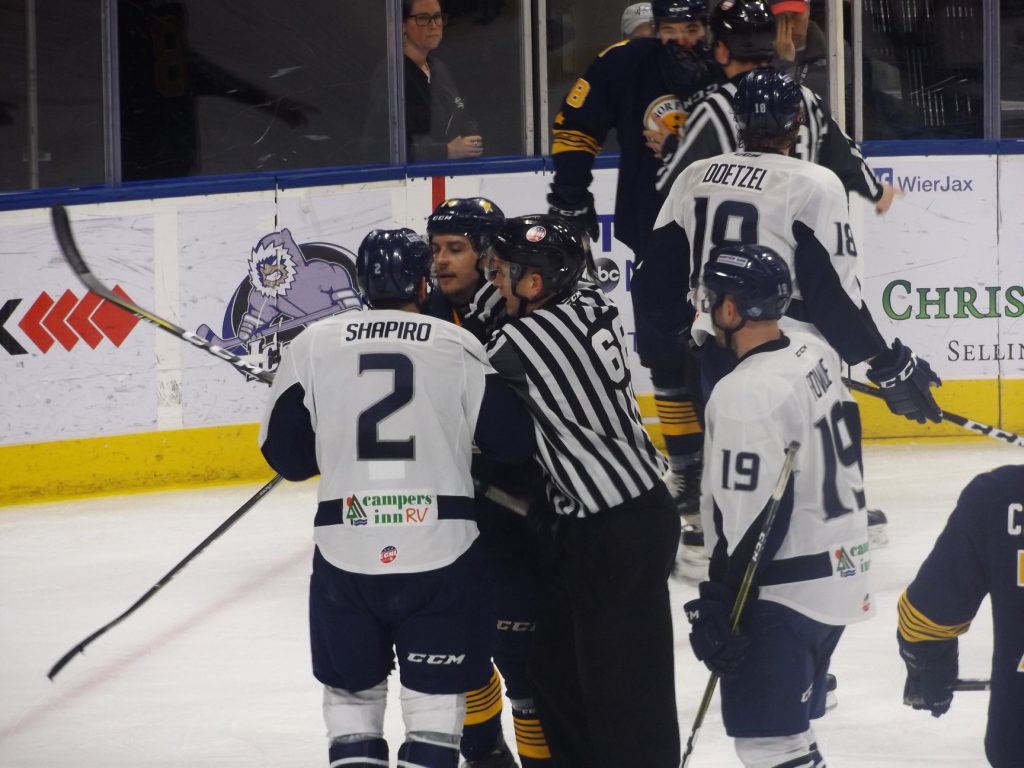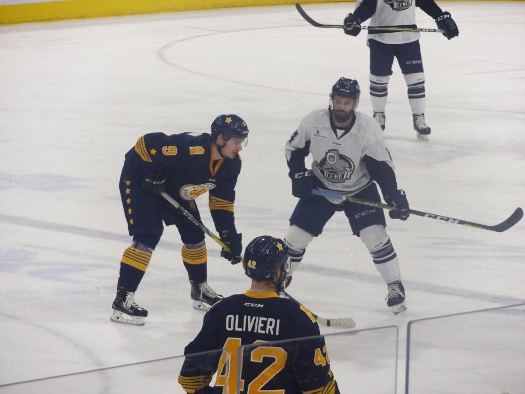 In the third, Darki Angeli scored a power play goal to push the Norfolk lead to 4-1. Assists on the man advantage tally went to Wood and T.J.Melancon. The Icemen got a goal from Kyle Shapiro off assists from David Broll and Matt Ustaski at 13:43 but it was not enough to complete the comeback.