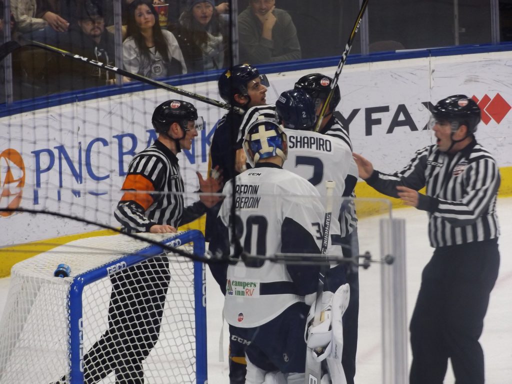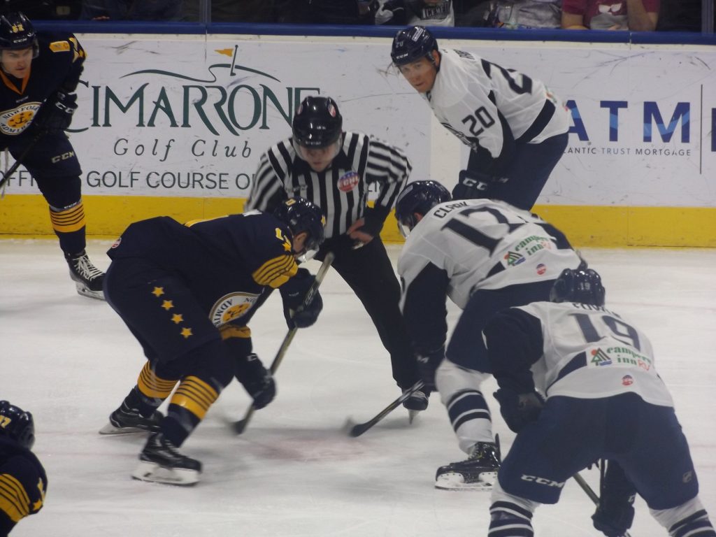 Norfolk was led by Jake Wood who had a goal and an assist in the contest. Wood opened the scoring at the 16:45 mark of the first period off assists from Matt McMorrow and Eric Roy.