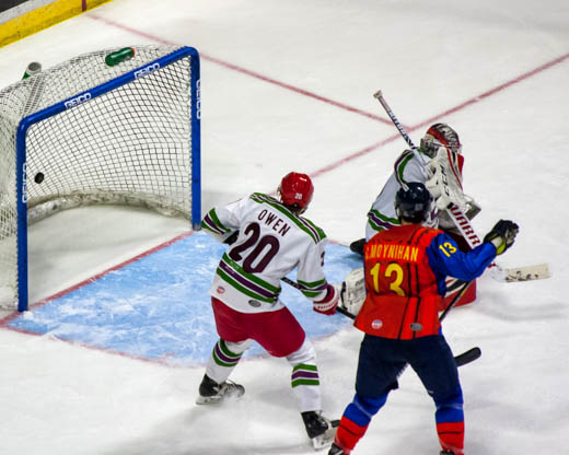 Tyler Sheehy opened the scoring 4:52 in, working his way to the back door after a hard hit in the corner, and popping a puck past Devin Williams’ blocker.