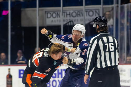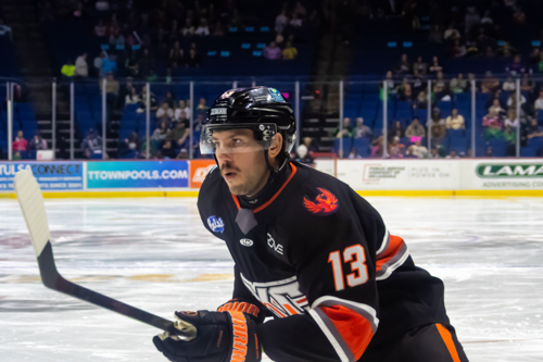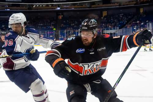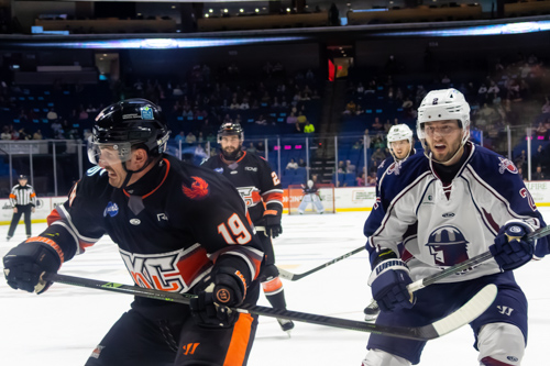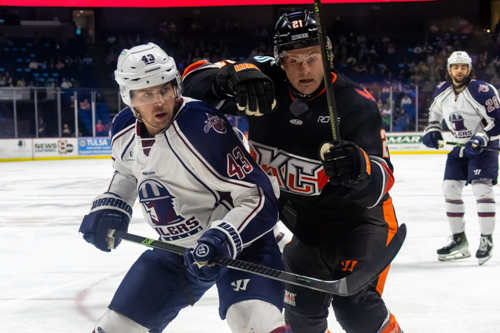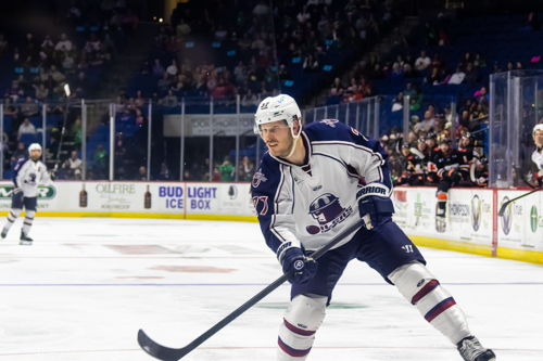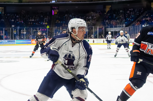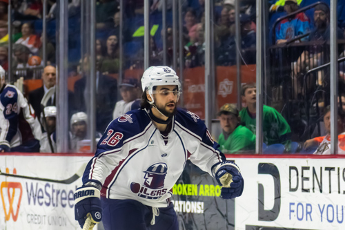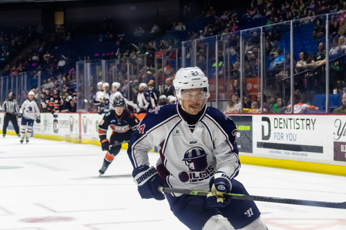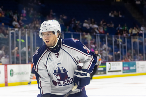 Tyler Poulsen broke the deadlock with exactly seven minutes remaining in the middle period, hammering home his 98thcareer ECHL goal — a net-mouth feed from Justin Michaelian — to put the Oilers up 1-0 heading into the third period.
