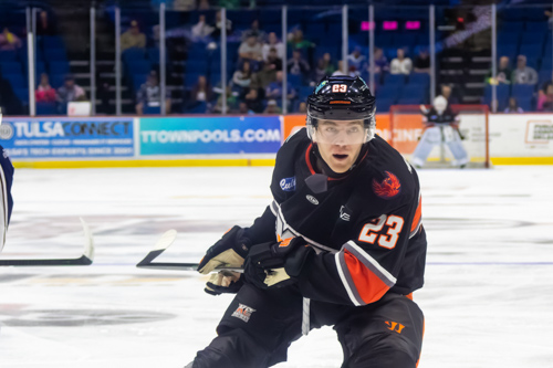 Tulsa Oilers forward Ian Amsbaugh (21)
