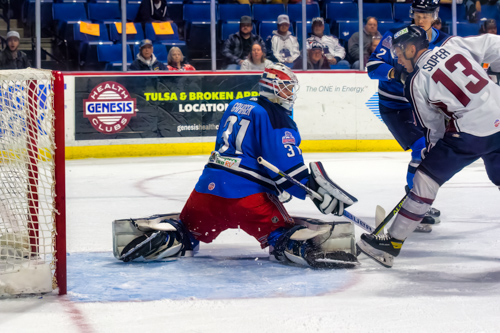Jacob Hamacher opened the scoring 45 seconds into the action, roofing the Icemen’s first chance, jumping to a 1-0 lead. Jacob Friend extended the Icemen’s advantage to 2-0 with an unassisted goal at the 13:41 mark. Jimmy Soper deflected a slap shot from Max Golod, beating Parker Gahagen on the power play to pull Tulsa within one with 1:13 left in the opening period. Soper’s goal gives him the first Oilers’ tally in three consecutive games.