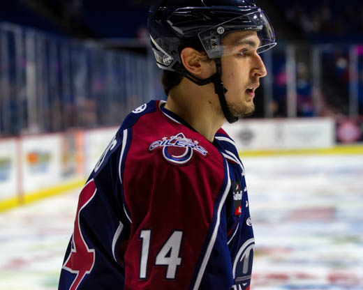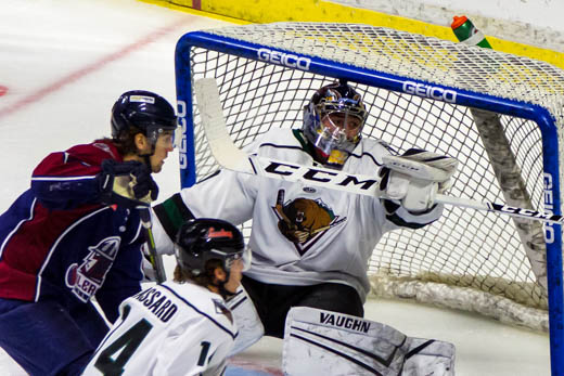 The Oilers picked up right where they left off on Sunday afternoon, jumping all over the Grizzlies in the opening frame. Adam Pleskach —who tied Doug Lawrence for the franchise record for all-time games played — spun the puck to Robby Jackson, who found Jared Thomas on the back door for a power play tally, Thomas’ fourth goal of the season. Ian McNulty extended the Oilers’ lead at the 17:32 mark, depositing a rebound off a Danny Moynihan shot, bringing the game to 2-0. The Oilers outshot the Grizzlies 16-5 by the end of the period.