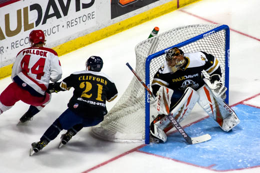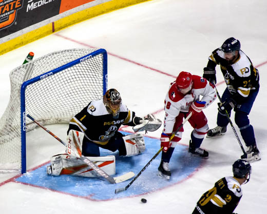 Allen seized the momentum early in the middle frame, with Corey Durocher scoring his first of the season on the first shot of the second period, roofing the puck over Devin Williams. Durocher followed up with his second of the season, linking up with former Maverick teammate Jared Vanwormer 32 seconds before the midway point of the game.