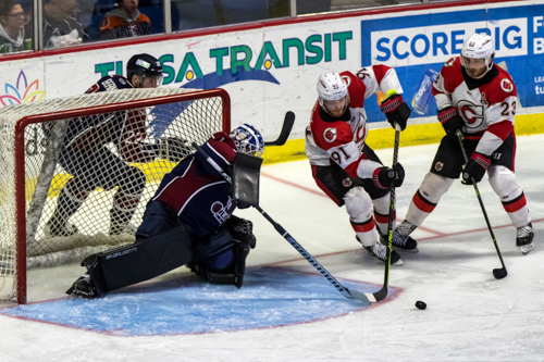 TULSA, Okla. —The Tulsa Oilers and Cincinnati Cyclones faced off in an intense game at the BOK Center, with both teams fighting for a crucial victory. The Oilers started off strong in the first period, with two goals scored by Ethan Stewart and Alex Gilmour, putting the home team in the lead.