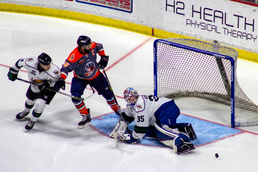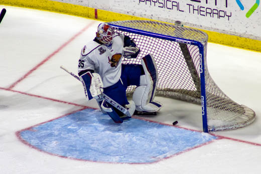 Matthew Boucher gave Utah its first lead of the game with a five-on-three, power-play goal 11:35 into the second. Mitch Maxwell followed up with his second of the season at the 14:30 mark, bringing the game 3-1 in Utah’s favor. Alex Kromm cut the Grizzlies’ lead to one 46 seconds after Maxwell’s tally, jamming home a tertiary chance at the lip of the crease.