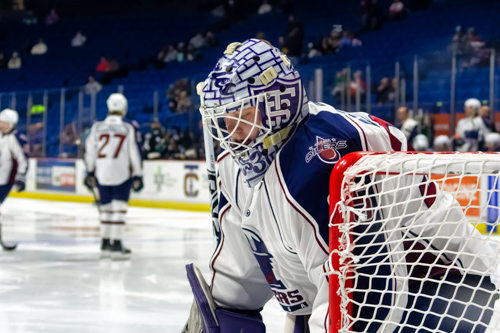 Tulsa Oilers goalie Jake Sibell (35)