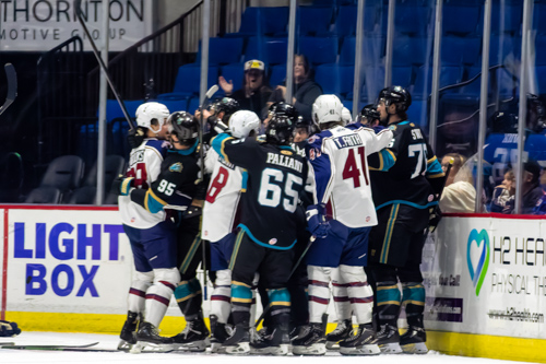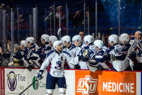 In the first period, the scoring started early. Trent Swick scored in the opening five minutes on the power play as Tahoe took a quick 1-0 lead. However, just 19 seconds later, the Oilers would respond as newly-appointed captain Tyrell Goulbourne tied the game with a goal of his own. At the 8:24 mark of the period, Adam Pitters scored on the power play off a pretty pass from Luke Adam to give the Knight Monsters a 2-1 lead heading into the locker room.