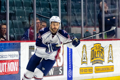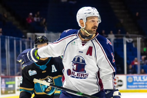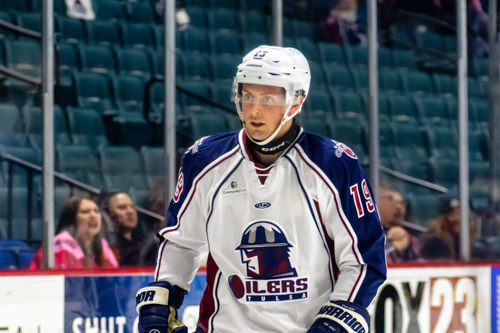 Tulsa Oilers forward Josh Nelson (19)