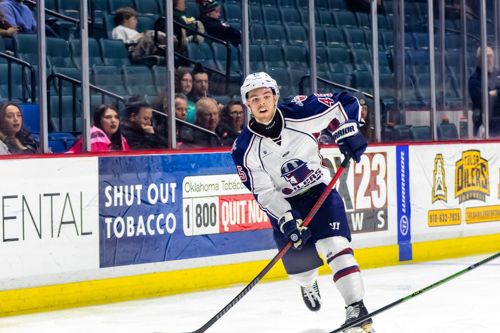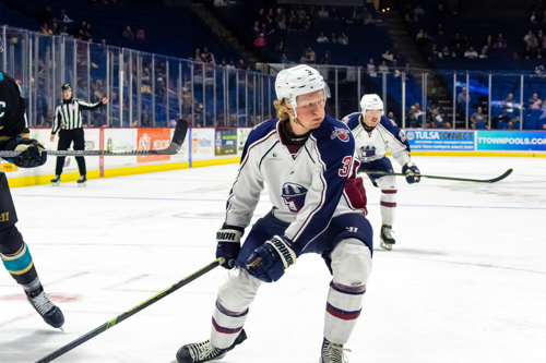 Tulsa Oilers forward Easton Armstrong (27)