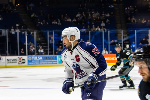 Tulsa Oilers forward Tyrell Goulbourne (13)