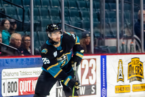 Tulsa Oilers forward Adam McMaster (22)