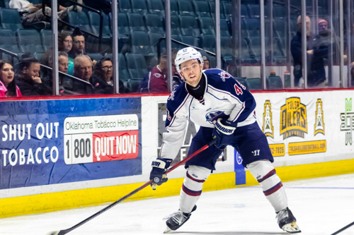 Tulsa Oilers defenseman Tanner Faith (41)