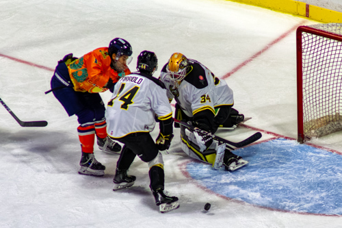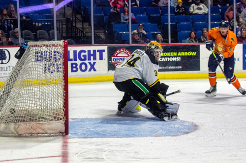Julian Junca played a key role in the win, making 33 saves and contributing to the competitive and intense atmosphere of the ice hockey game. This marked only the second time the Heartlanders played at Tulsa.