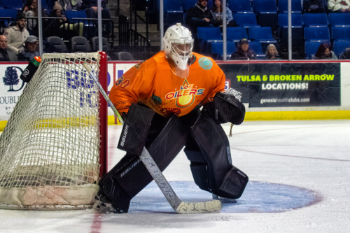Tulsa Oilers goalie Julian Junca (30) in overtime