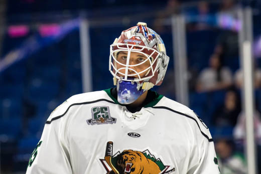 Utah Grizzlies goalie Parker Gahagen (35)