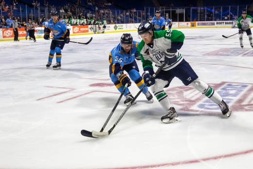Keeghan Howdeshell extended Toledo’s lead to two 3:10 into the second period, trickling the puck over the goal line from beneath the circles to beat Daniel Mannella. Jackson Leef scored the lone Oilers’ goal 90 seconds later, tipping the puck from the lip of the crease and beyond the reach of Billy Christopoulos on the power play.