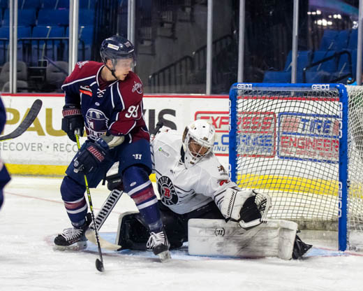 Avery Peterson scored his team-leading 20th goal of the season 1:28 into the second period, dropping to one knee before releasing a blast over the shoulder of Devin Williams. Conor Landrigan made it a 3-1 game with a goal in his first professional appearance, powering a puck through the shoulder of Brad Barone 11:07 into the period. Avery Peterson closed the scoreline 4-1 with 4:31 left in the second period, beating Williams from the right wing. Hayden Hawkey made his Oilers debut in relief of Williams with 24:31 remaining in the game, stopping seven of seven shots.