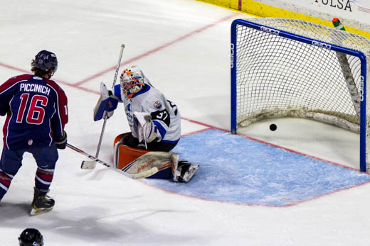 Tulsa opened the scoring with a power play goal at the 11:11 mark of the first period. J.J. Piccinich tipped a blast from Josh Wesley through the legs of Mitch Gillam, giving the Oilers the lone goal of the opening frame.