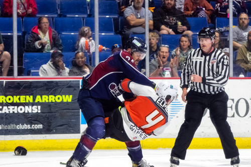 Tag Bertuzzi converted on the first shot of the game, beating Dillon Kelley top shelf just 2:58 into the action and putting Tulsa up 1-0. Eddie Matsushima extended the Tulsa lead to 2-0 with 4:07 remaining in the frame, jamming home his team-leading 28th goal in his first game since being activated from injured reserve.