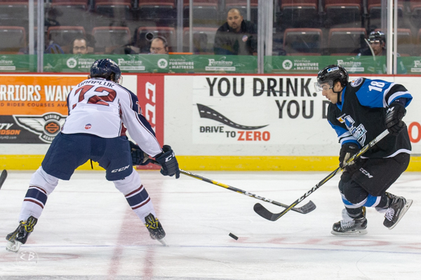 After a scoreless first period, the two teams combined for four goals in the second. Roy got things started at 1:11 of the second with a wrist shot from the blue line that got tipped through the air and got past Devin Williams. At 3:17, Roman Ammirato tied it at one with an assist to Jared Thomas. Alex Globke scored his first of two at 7:09 after finding a rebound and put it past Stuart Skinner to make it 2-1. Gabrielle tied the game at two as he found a rebound during a net-mouth scramble and recorded his sixth of the year.