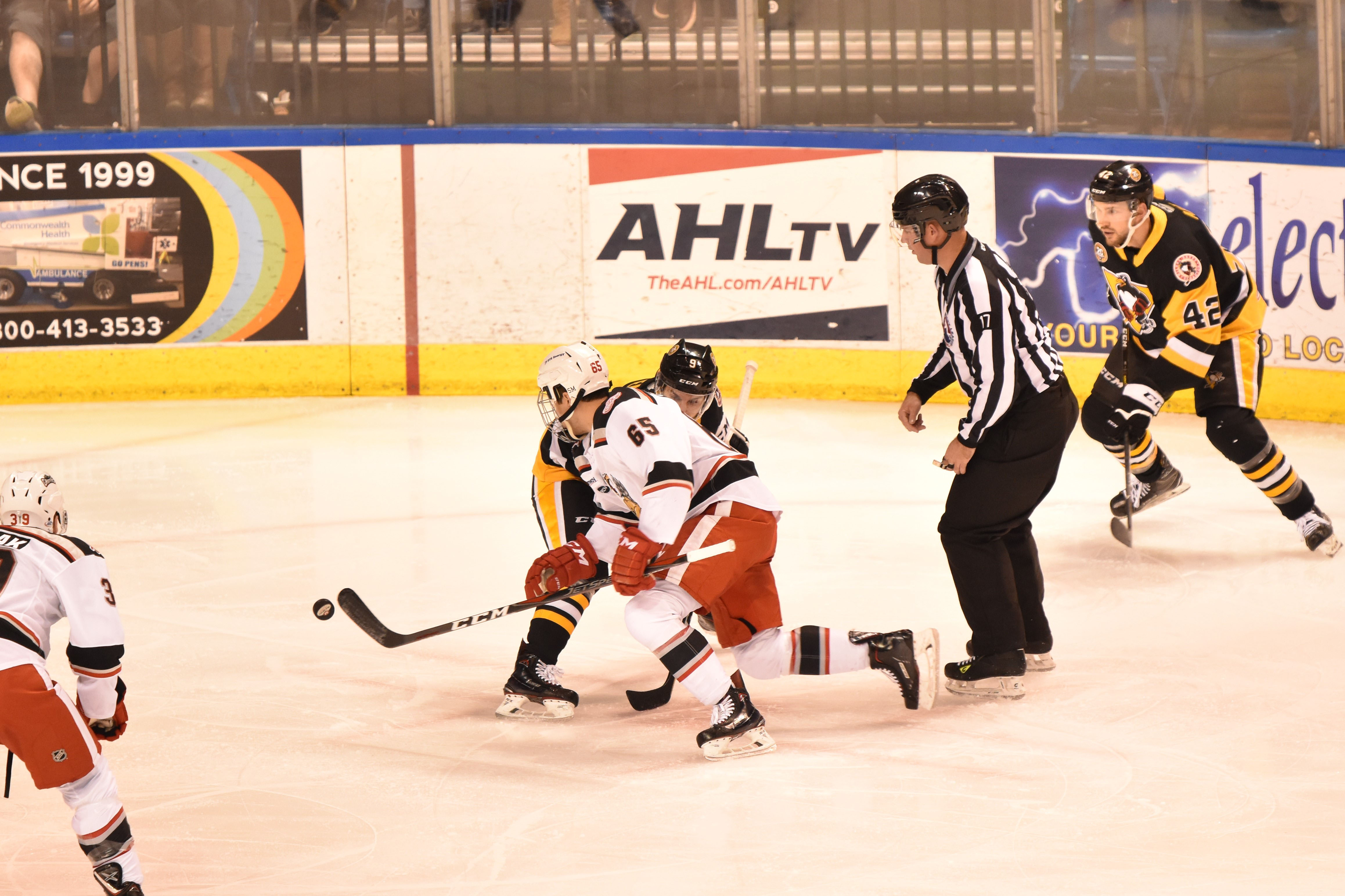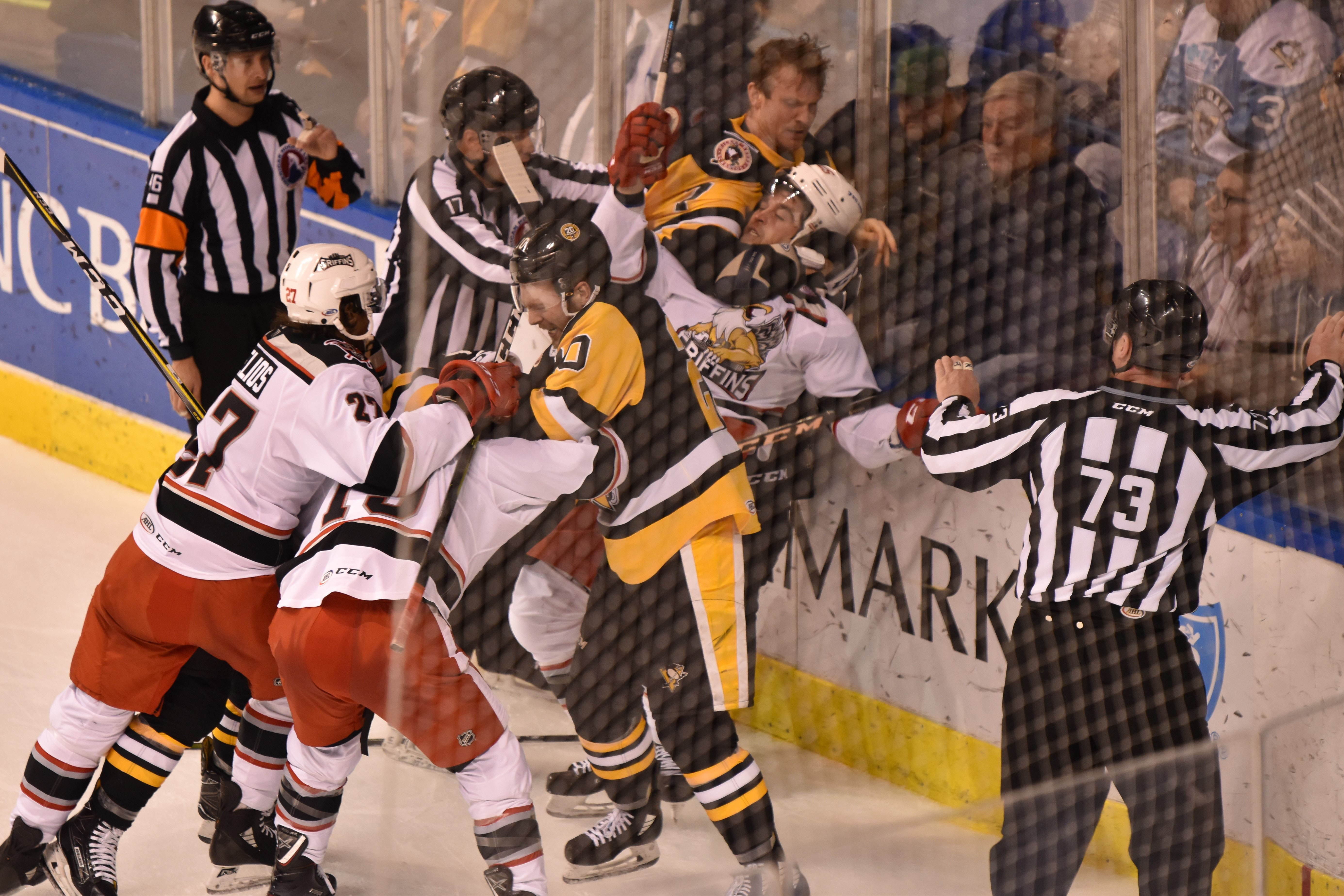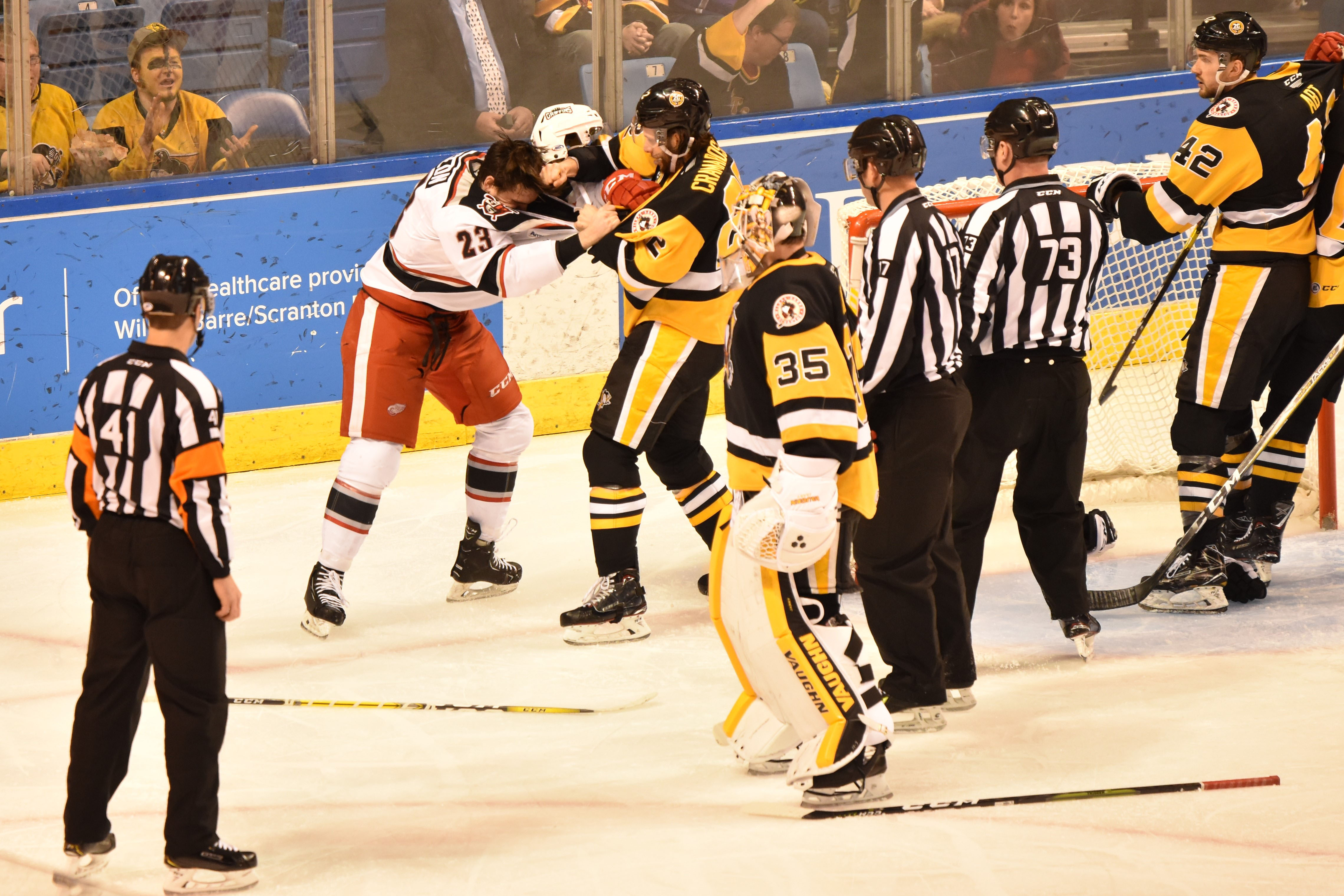 Friday, January 4, 2019 at the Mohegan Sun Arena – WBS Penguins vs Grand Rapid Griffins. The Penguins won in a shoot out with a score of 3-2 over the Griffins.