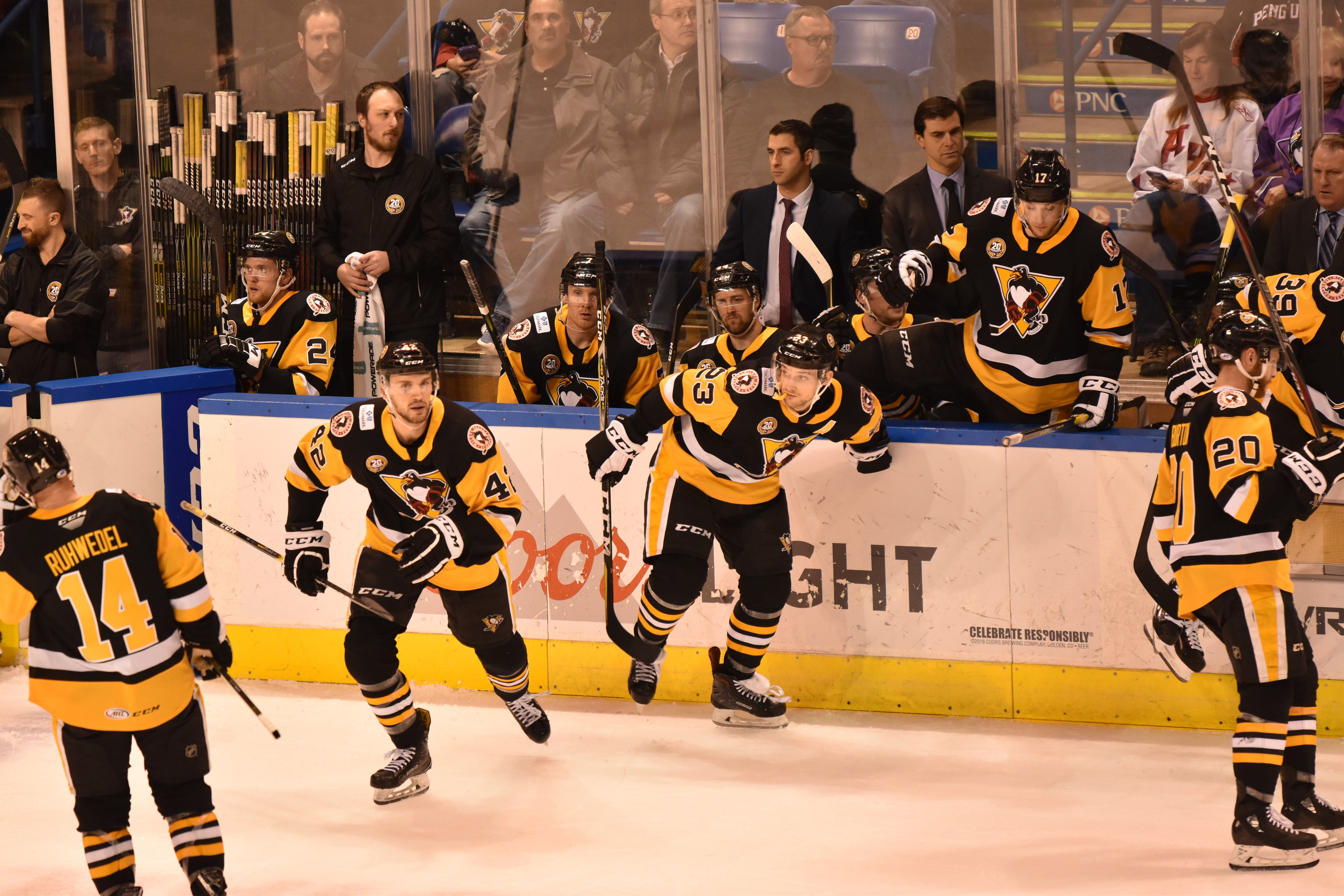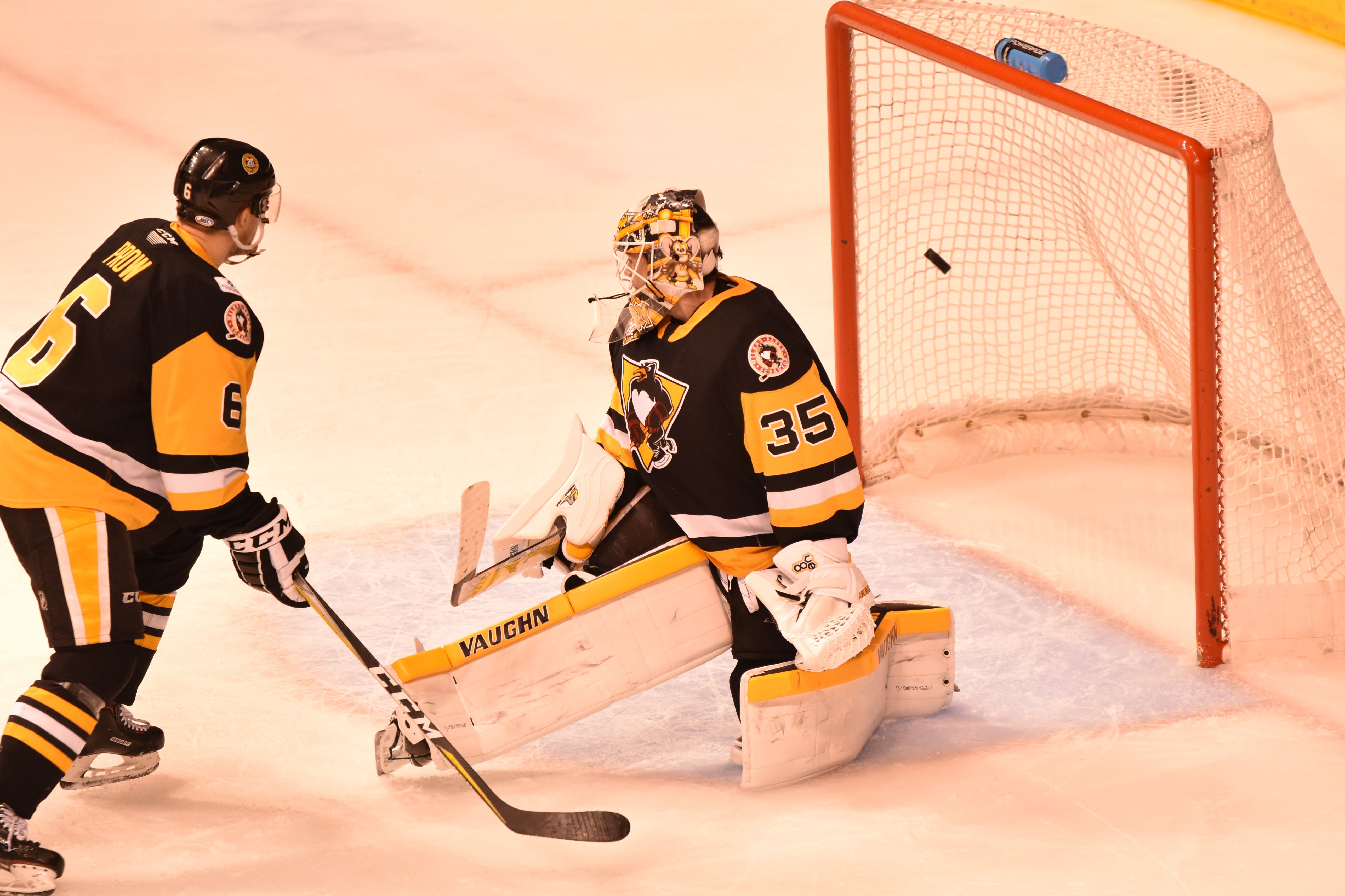 The Penguins earned a four-minute power play later in the second period, but after seeing a Griffins penalty killer snap his stick and several posts struck by Penguins shooters, their lengthy man advantage was unsuccessful. During that sequence, Grand Rapids earned a shorthanded breakaway, and Tristan Jarry came up with a crucial save for Wilkes-Barre/Scranton.