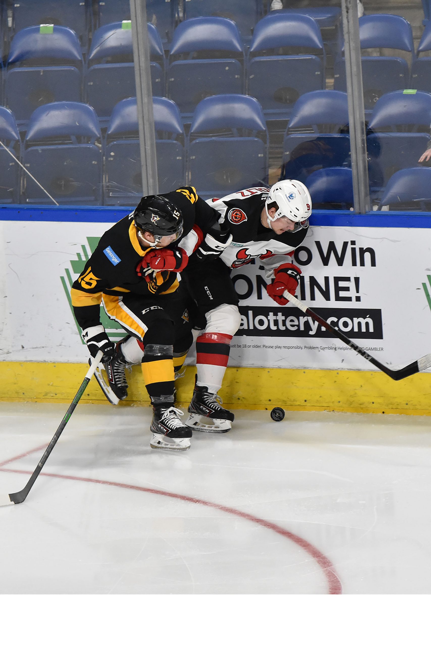 Schilkey broke the deadlock at 8:24 of the second period. A long shift in the Devils’ zone ended with Gruden making a shrewd pass to set up Schilkey for the one-timer.