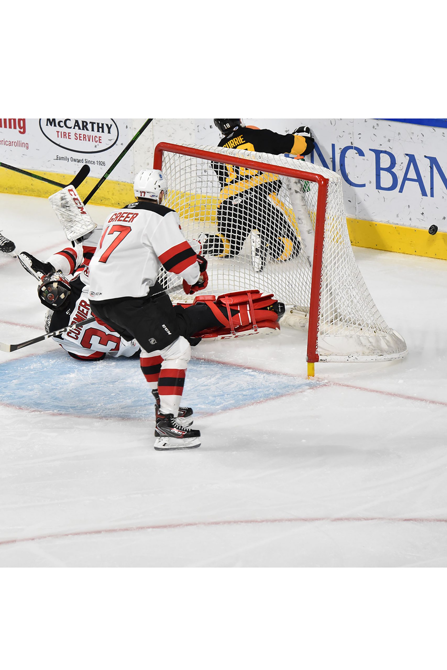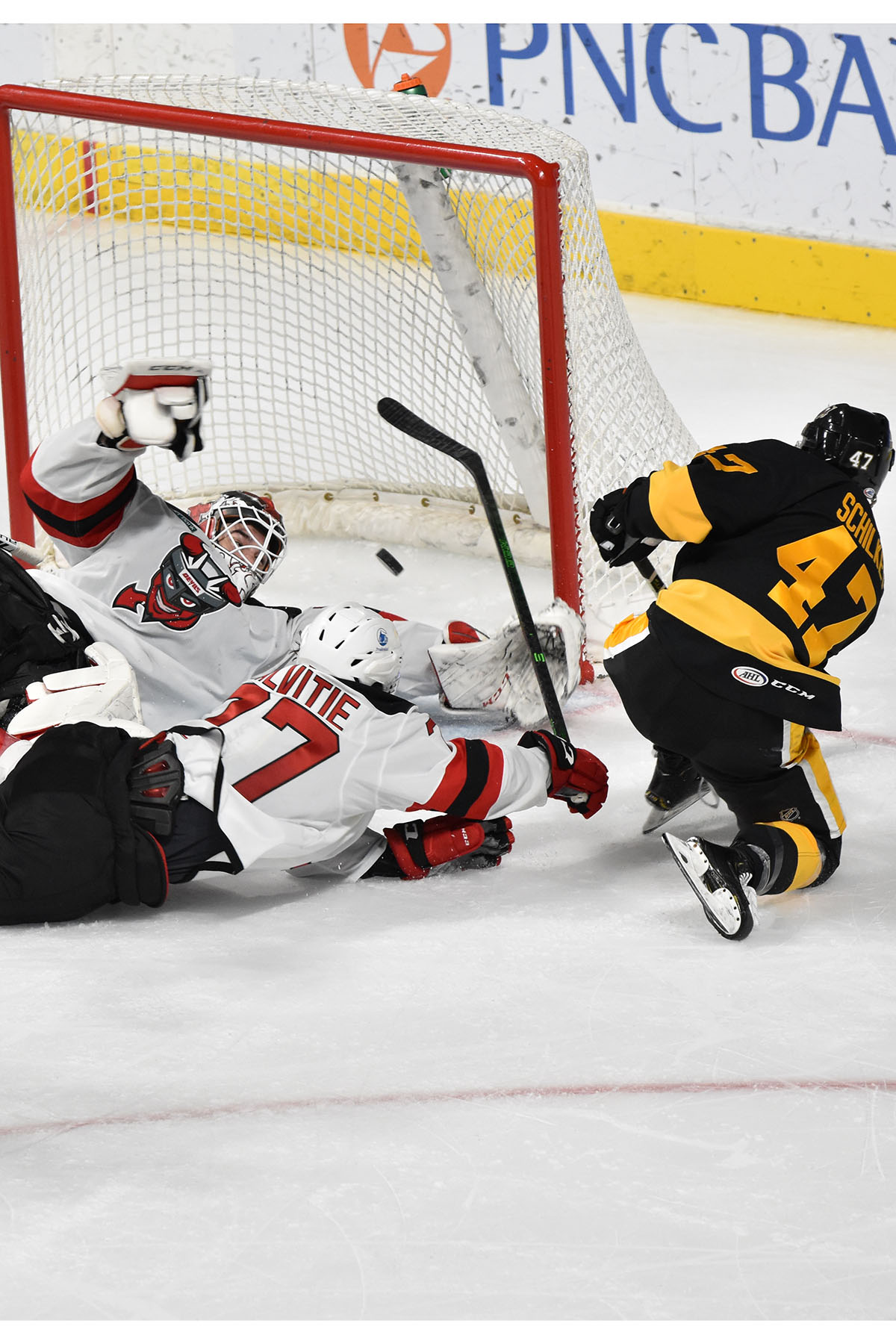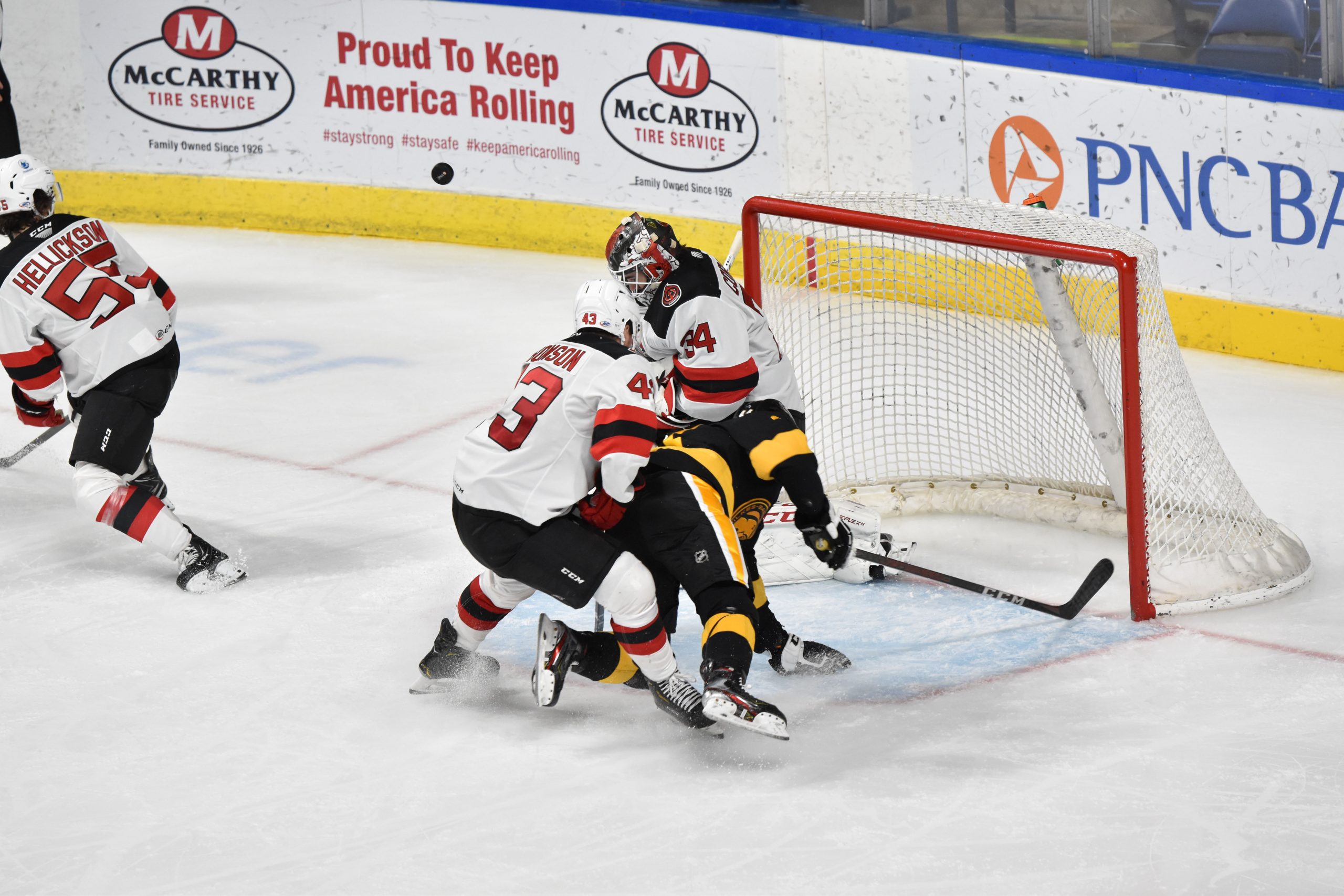Anthony Angello ran the Penguins’ lead to 3-0 on a tremendous individual effort that started in his team’s defensive end. Angello knifed the puck away from Devils forward Graeme Clarke along the right-side boards, and then outraced every Binghamton defender through the neutral zone to earn a point-blank chance on Evan Cormier. Angello buried his opportunity with a devastating snap shot at 12:16 of the third period.
