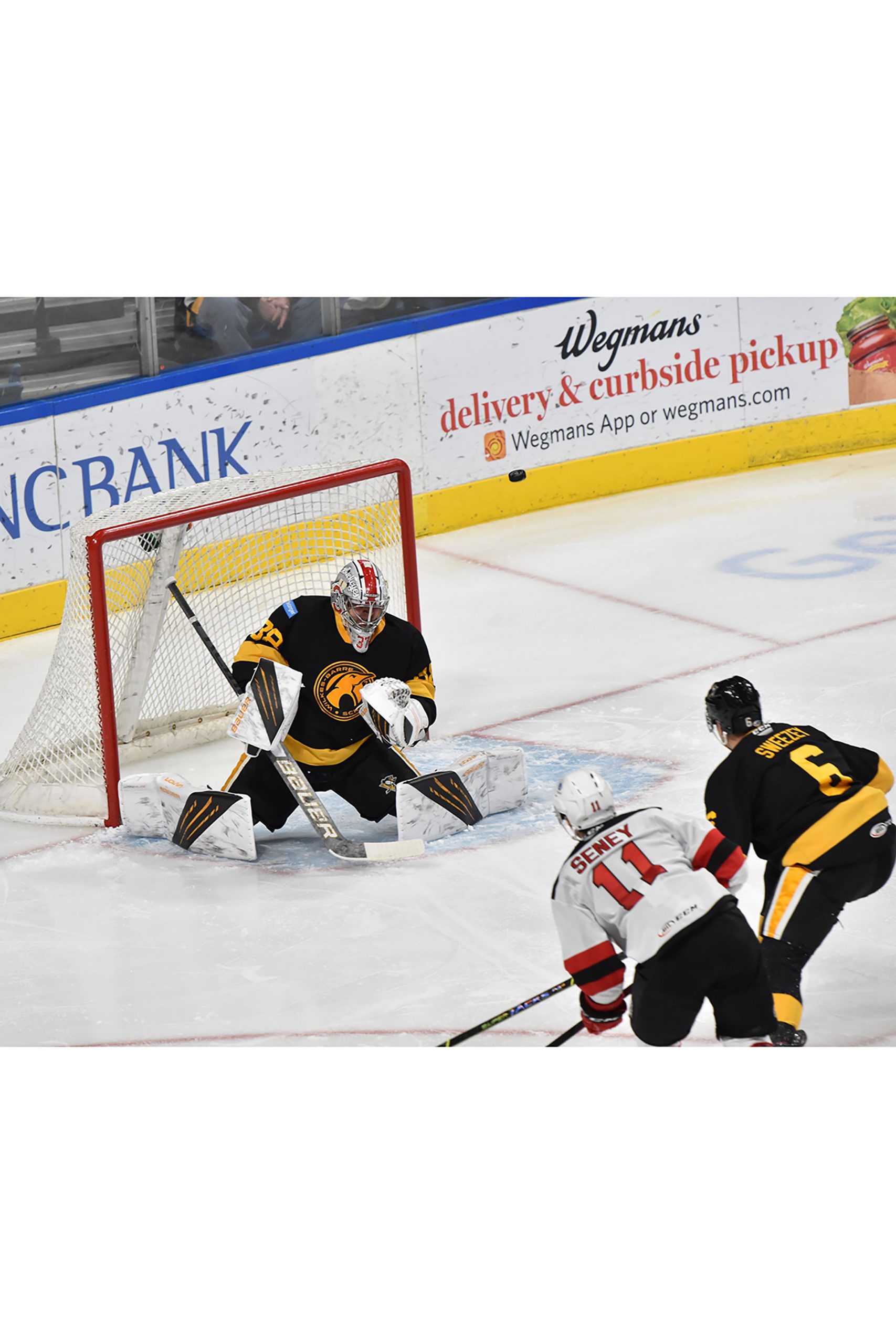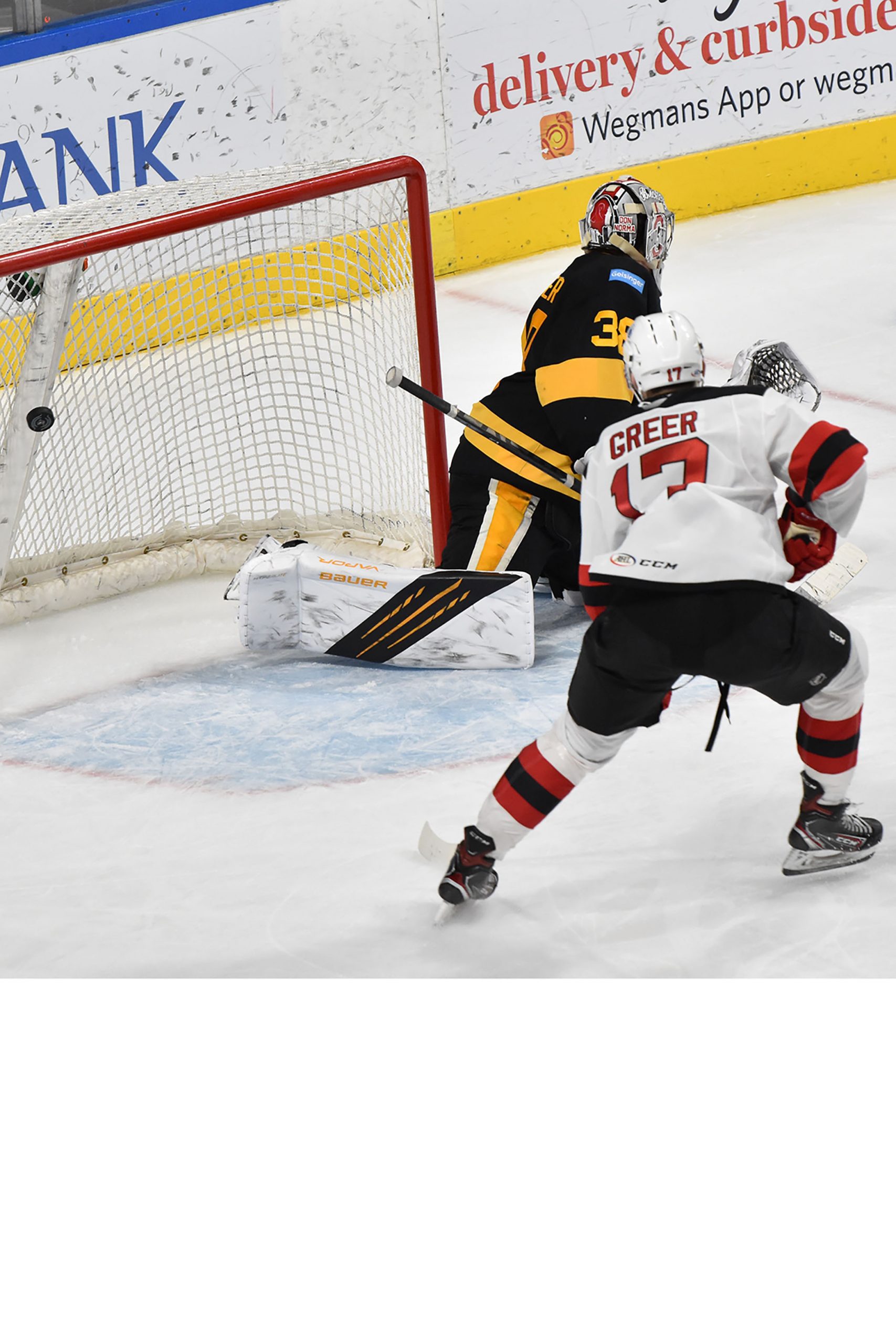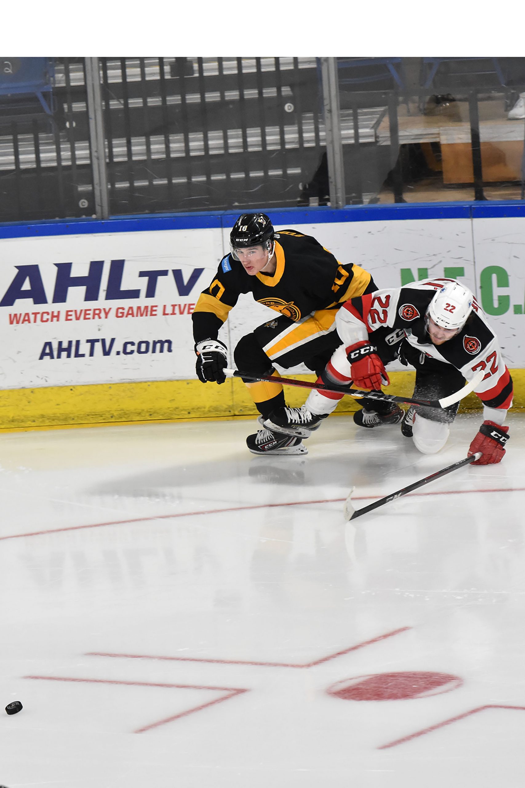 Anthony Angello ran the Penguins’ lead to 3-0 on a tremendous individual effort that started in his team’s defensive end. Angello knifed the puck away from Devils forward Graeme Clarke along the right-side boards, and then outraced every Binghamton defender through the neutral zone to earn a point-blank chance on Evan Cormier. Angello buried his opportunity with a devastating snap shot at 12:16 of the third period.