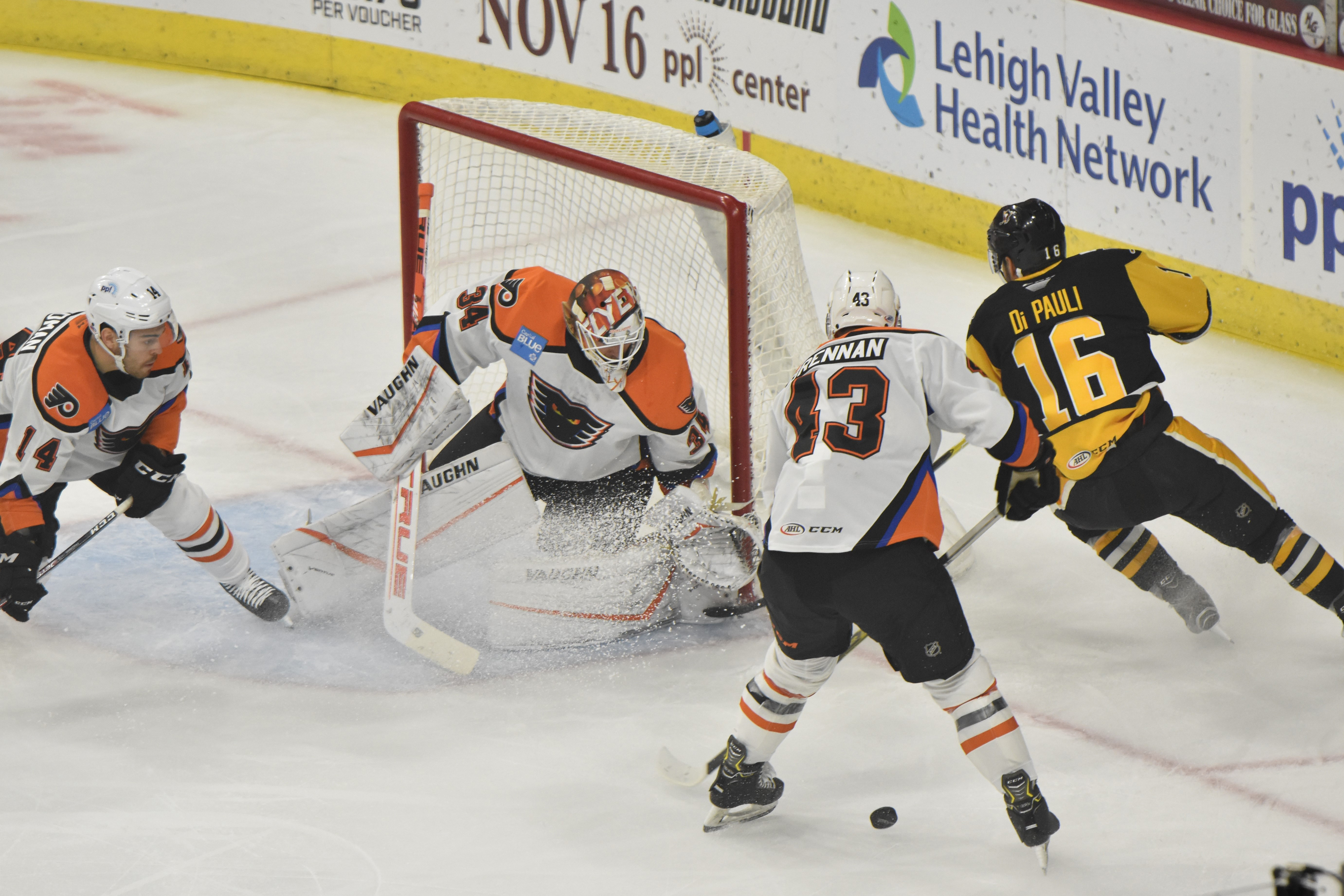 The Penguins would get on the board early in the first minute of the second period while on the power play to cut the Phantoms lead to one. But that’s all the Penguins would be able to score on Friday night as Alex Lyons was strong in his 2019 debut, saving 18-of-19 shots including 16-of-17 over the last 40 minutes.