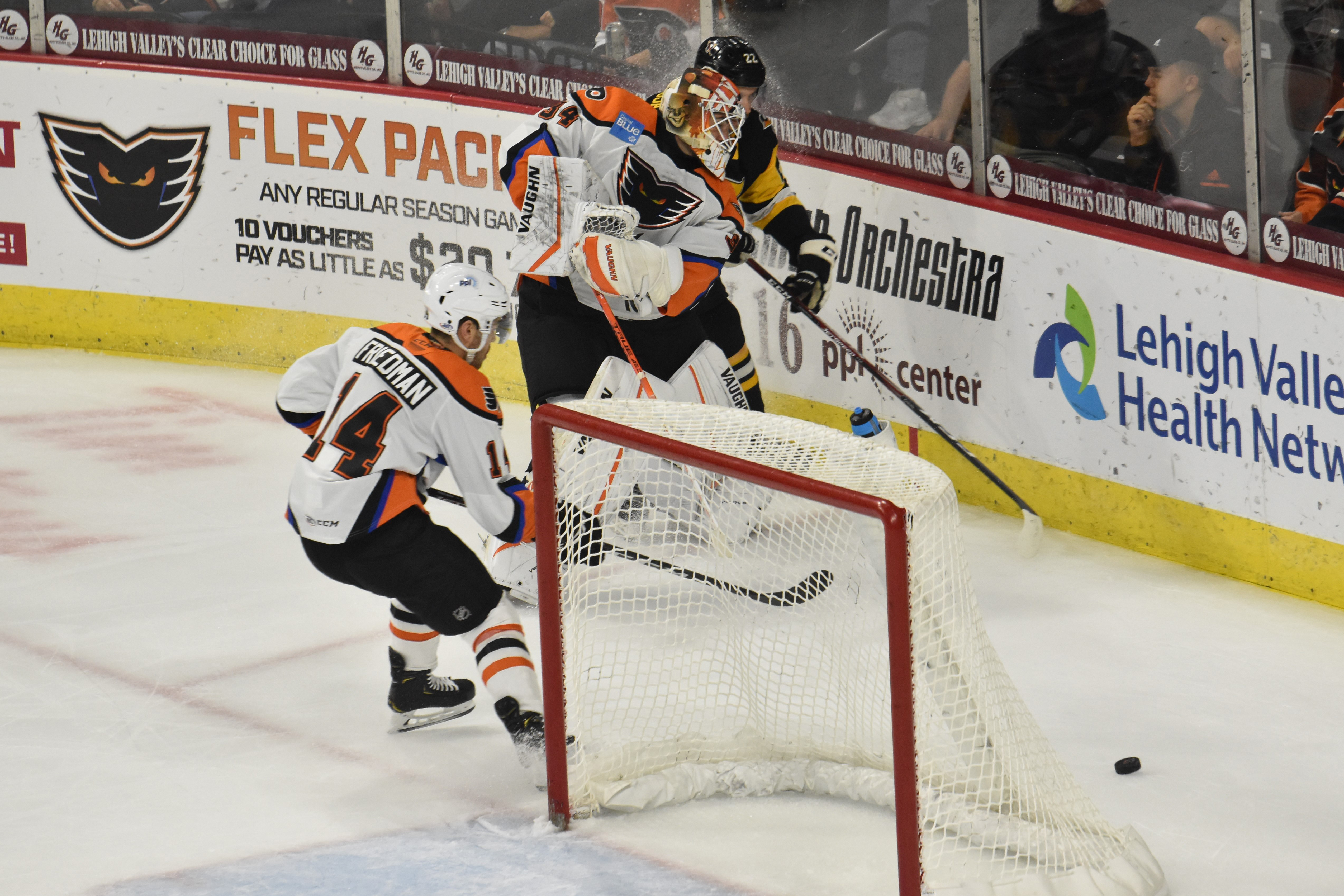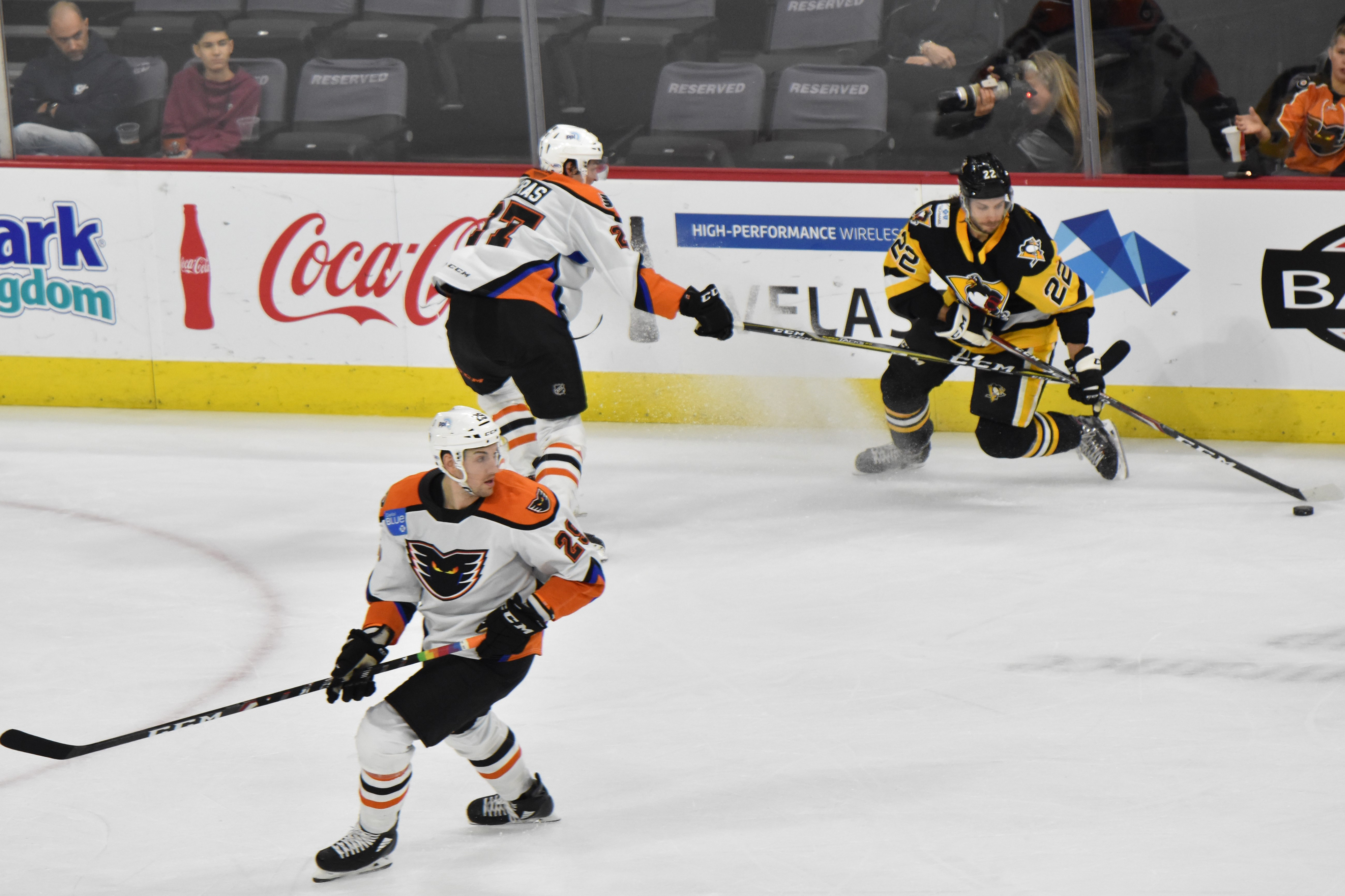 After an eventful first two periods, the final 20 minutes of Friday night’s matchup saw the two teams exchange a few scoring chances but saw no goals scored as the Phantoms held onto their 4-1 lead and earned their first victory of the 2019-20 season.