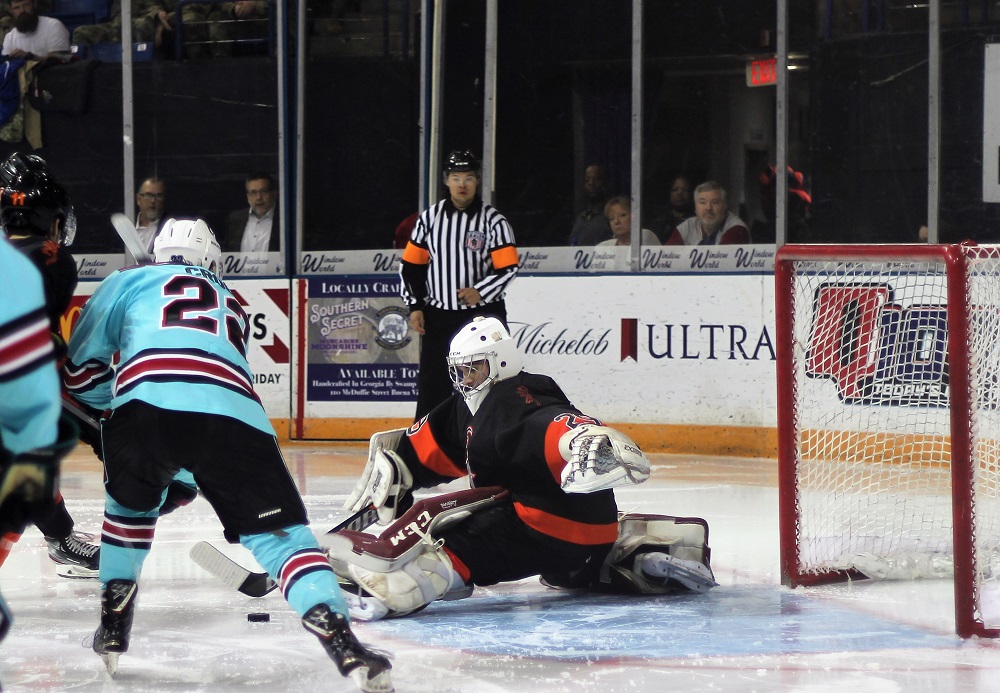 Both leadoff men scored for their teams. For Danville it was Fred Hein off the post and in past Rutledge’s low blocker. And Columbus got their goal through Yianni Liarakos with a snipe over White’s right shoulder. In the bottom of the third round it was MJ Graham with a five-hole shot that gave Columbus the win and the extra point on the table.