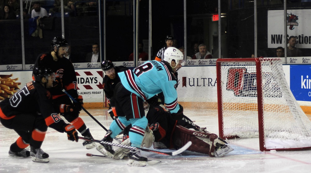 Columbus, GA – The Columbus River Dragons were looking for retribution after dropping the first of their three game set with the Dashers last night. They succeeded in that feat winning in a shootout 2-1.