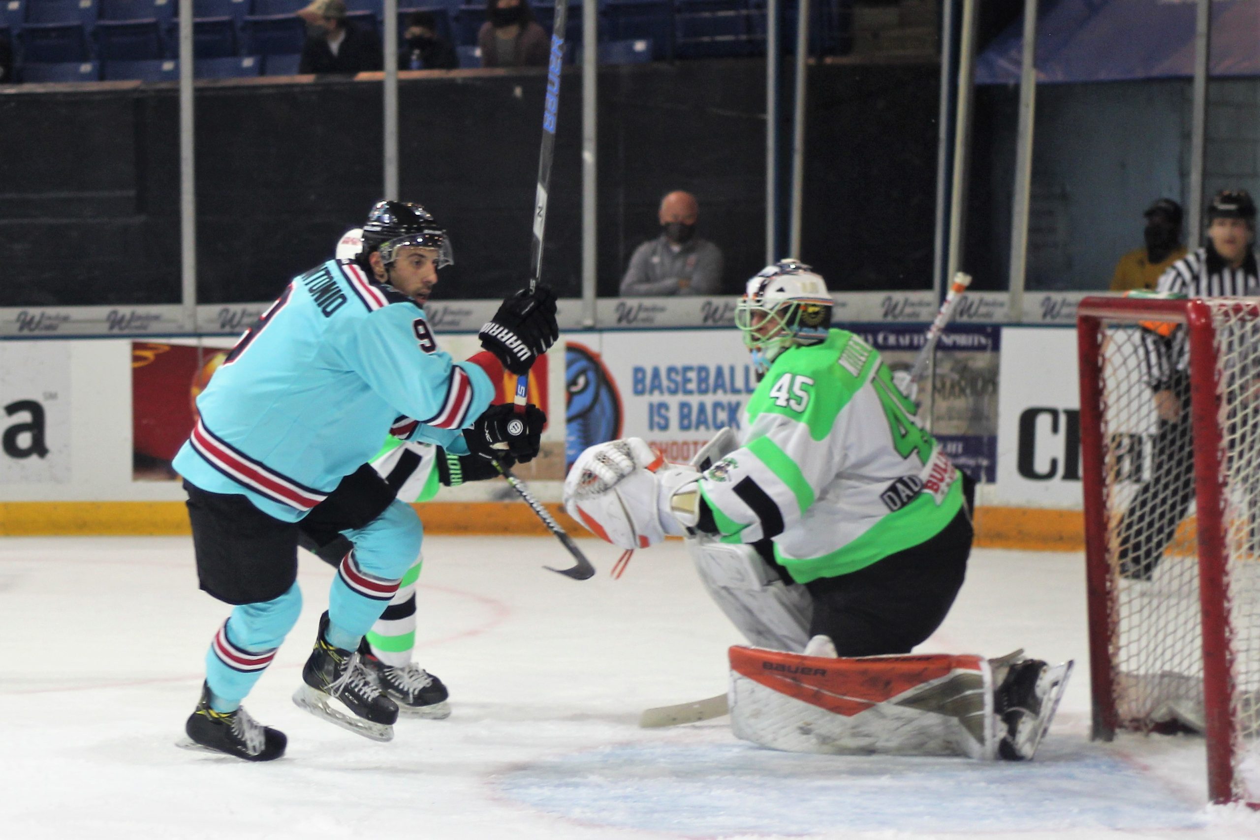 Elmira re-composed themselves in the overtime frame winning a strong majority of the faceoffs and holding the puck for long chunks of the extra period. However, a turnover caused by Josh Pietrantonio sprang him and O’Dea on a 2-on-1 rush and the young defenseman made no mistake on the pass across from the Columbus captain to give the River Dragons two of the three points on the night.