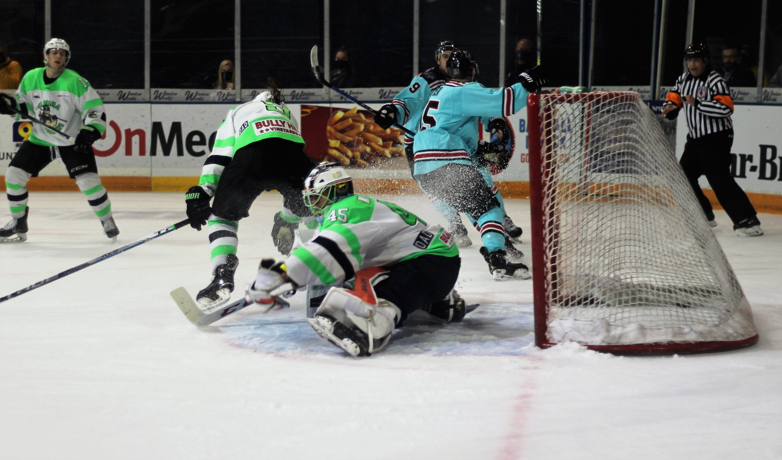 As the game dwindled down though, Elmira was able to hunker down and keep their one-goal lead until the 16:39 mark of the period when CJ Stubbs drove the net and Vojtech Zemlicka put the puck right on his tape for a quick tap-in goal and a 4-4 game with just a few minutes to go.