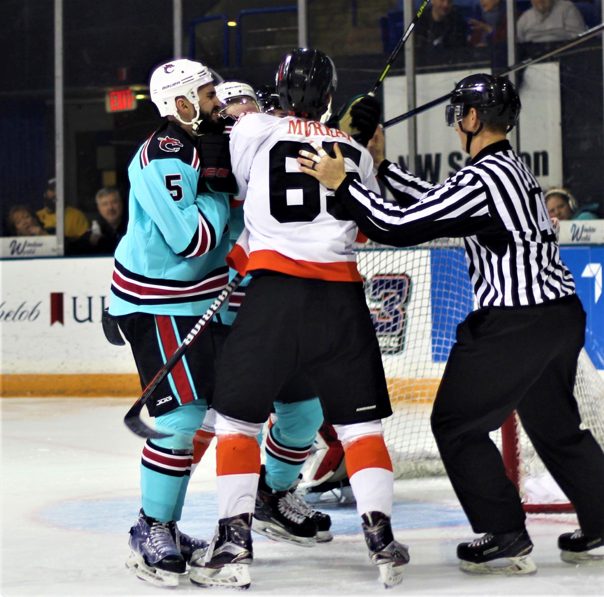 After it was 7-1, it was time to get a little rowdy again. Over the course of the last 4:10 there were two fights and multiple game misconducts handed out to each team which saw the benches get quite thin near the end of the game. Danville took the shorter benches to their advantage with two goals late. The first from Tyler Quintos on a point shot after a faceoff to make it 7-2. The Danville captain Justin Brausen blasted one between Karpinksi’s glove and pad for a 7-3 contest.
