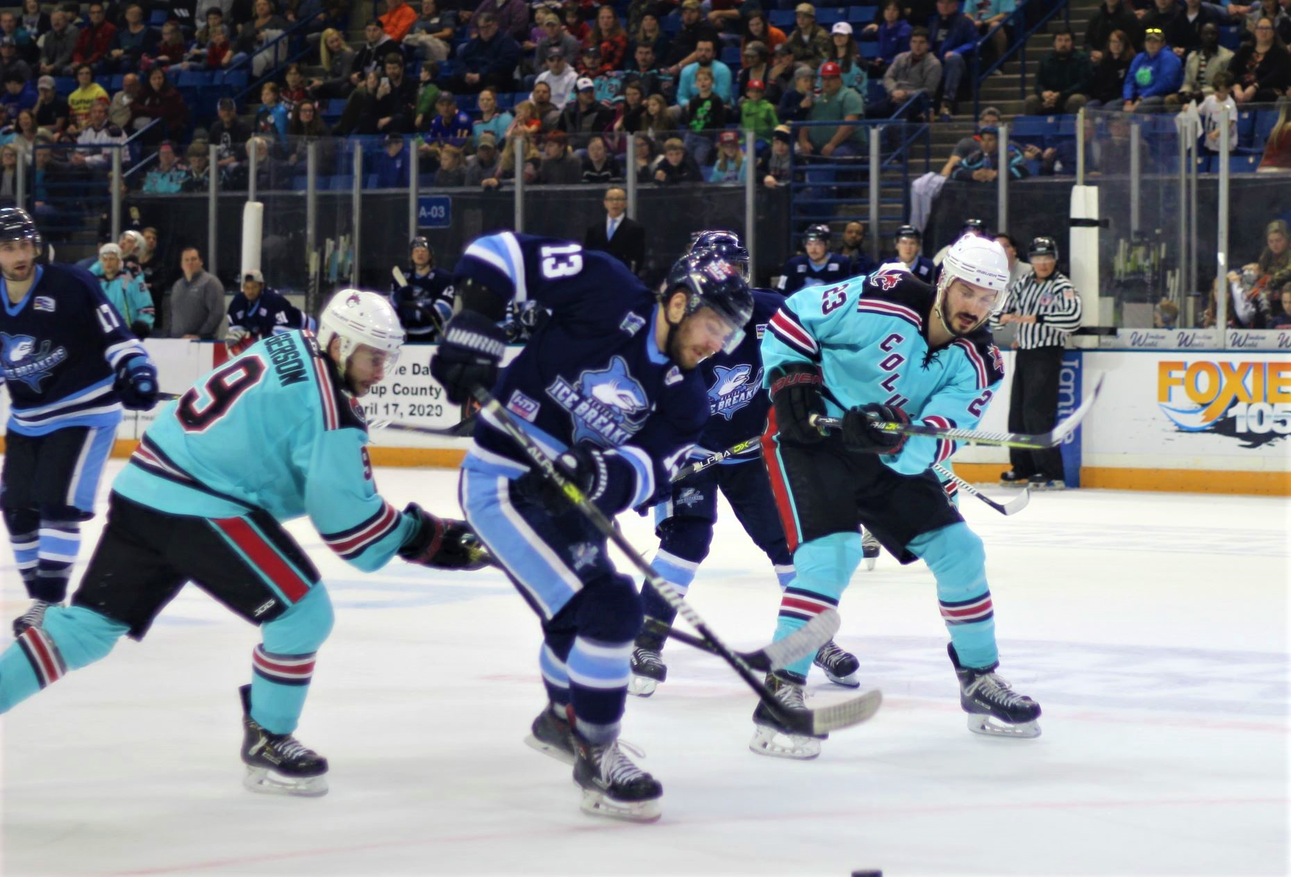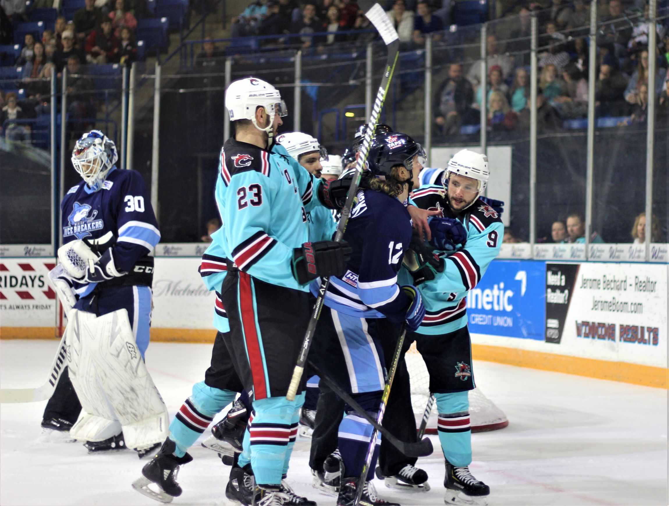In the third the Ice Breakers continued to force the issue and got another goal this time with Declan Conway slamming home a rebound about four minutes into the third. While that was the last goal in the game, the fireworks were still a plenty with many different hockey gatherings and a few players sent to the locker rooms for early showers. While it didn’t match the three fight first period that energized the crowd, we did nearly have a goalie fight between Rutledge and Brant after Rutledge was contacted near the end of the game.