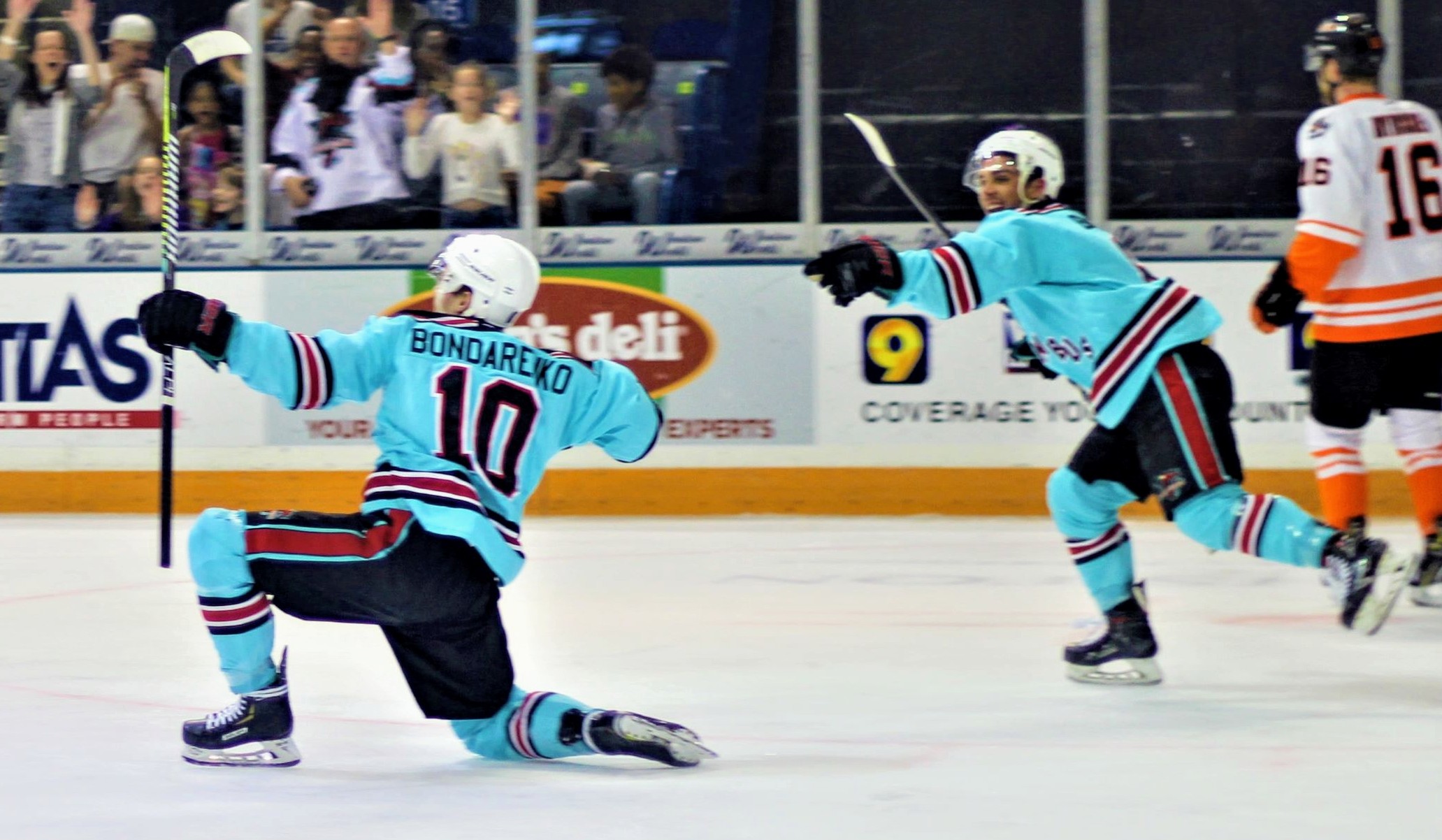 In the second though Columbus answered quickly. A long bomb pass from Graham was gotten to first by Bondarenko to negate icing, then he put it out in front and forced a rebound off McGuckin for Jay Croop to tap in the goal and make it 2-1 with just over a minute gone in the second. Columbus would then double their lead when celebrity player and former Cottonmouth Orrin Hergott scored on a quick shot from the right circle to make it 3-1.