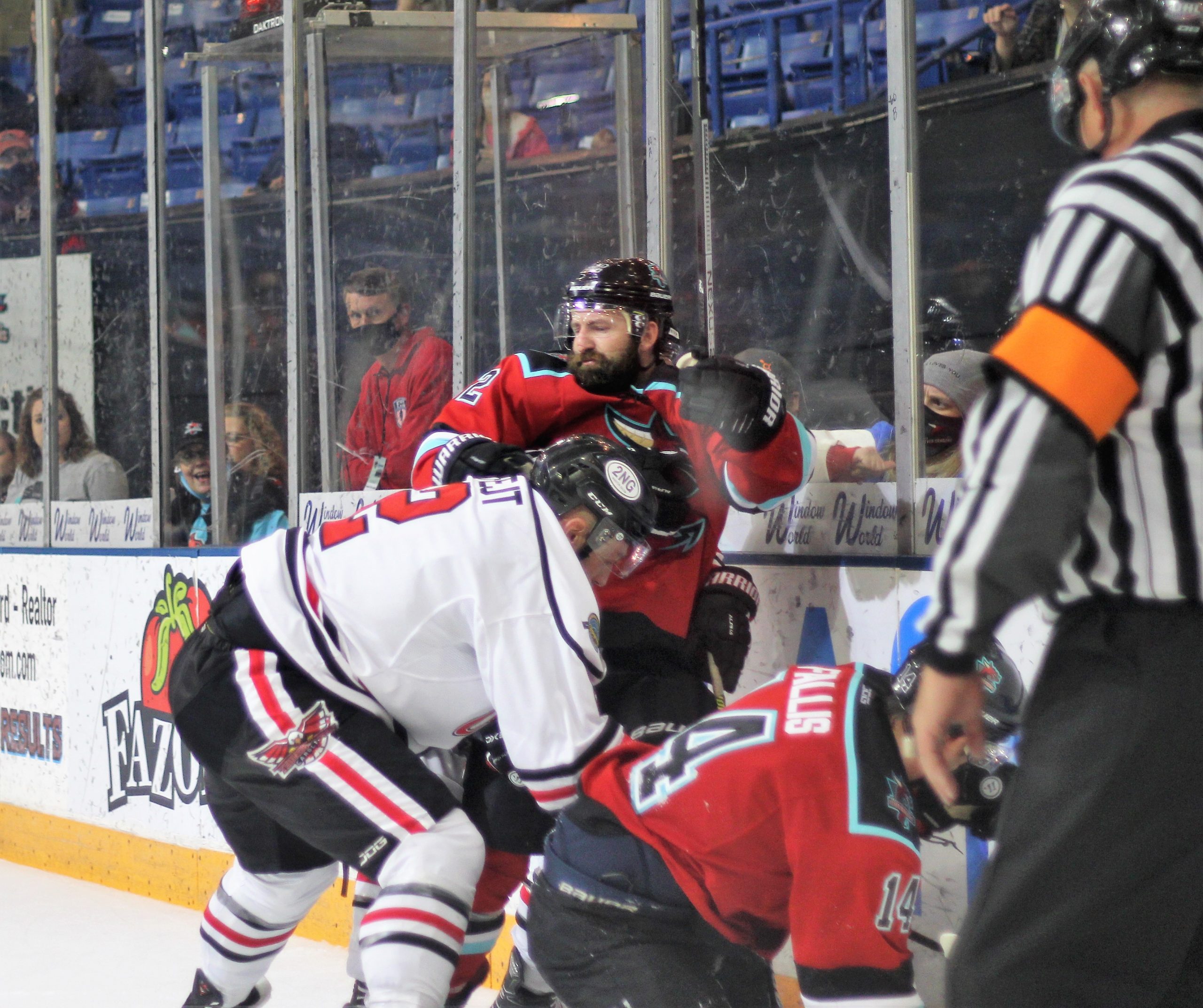 Columbus would get the last laugh on the ice both on the scoreboard and on the fight card. First a Nate O’Brien goal at the 18:08 mark gave Columbus the 5-2 lead and the eventual final scoreline. Then, 5 seconds later, Chase Fallis and Tommy Cardinal got into a scrap off the faceoff with the Columbus forward ending up on top at the end of the brawl.