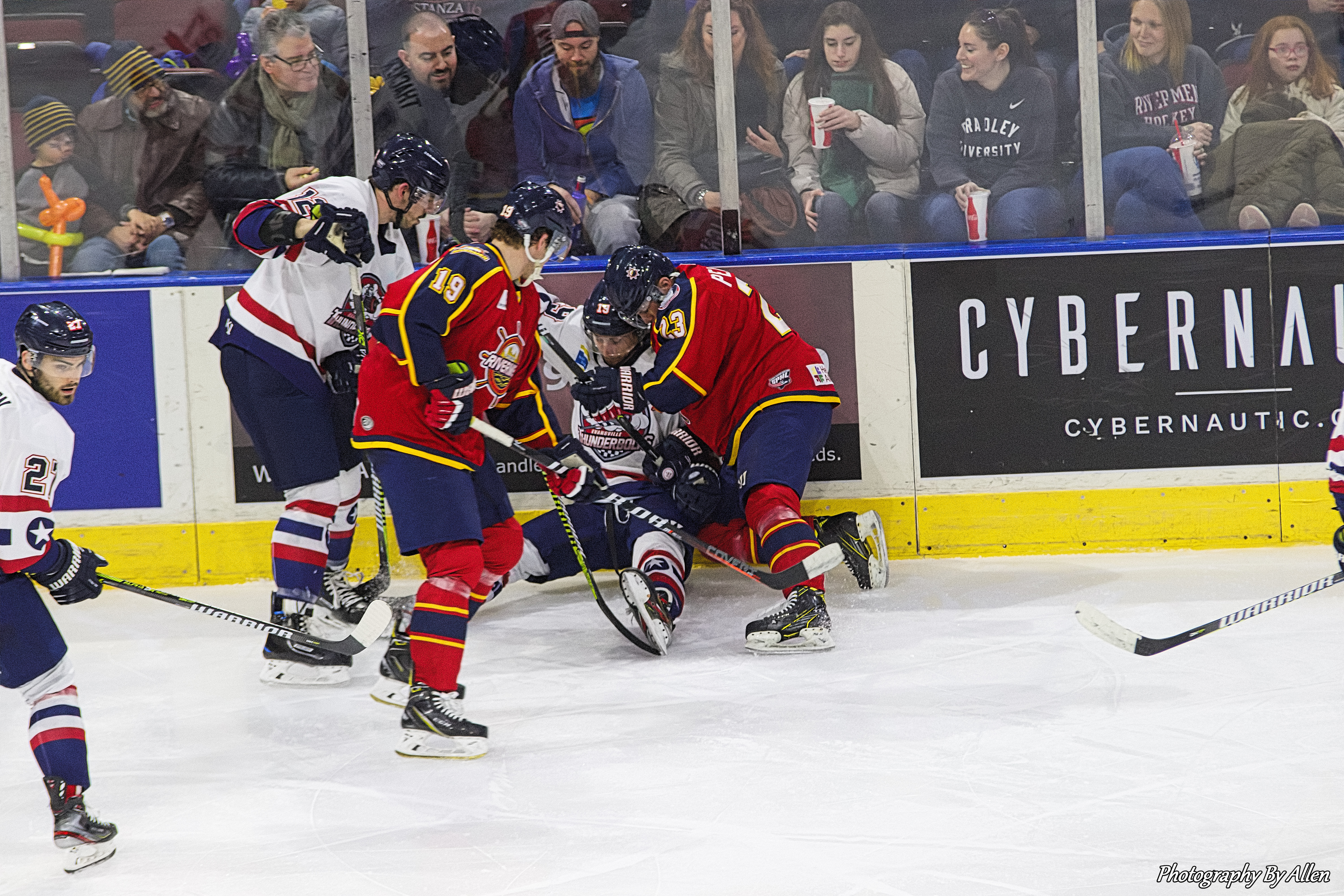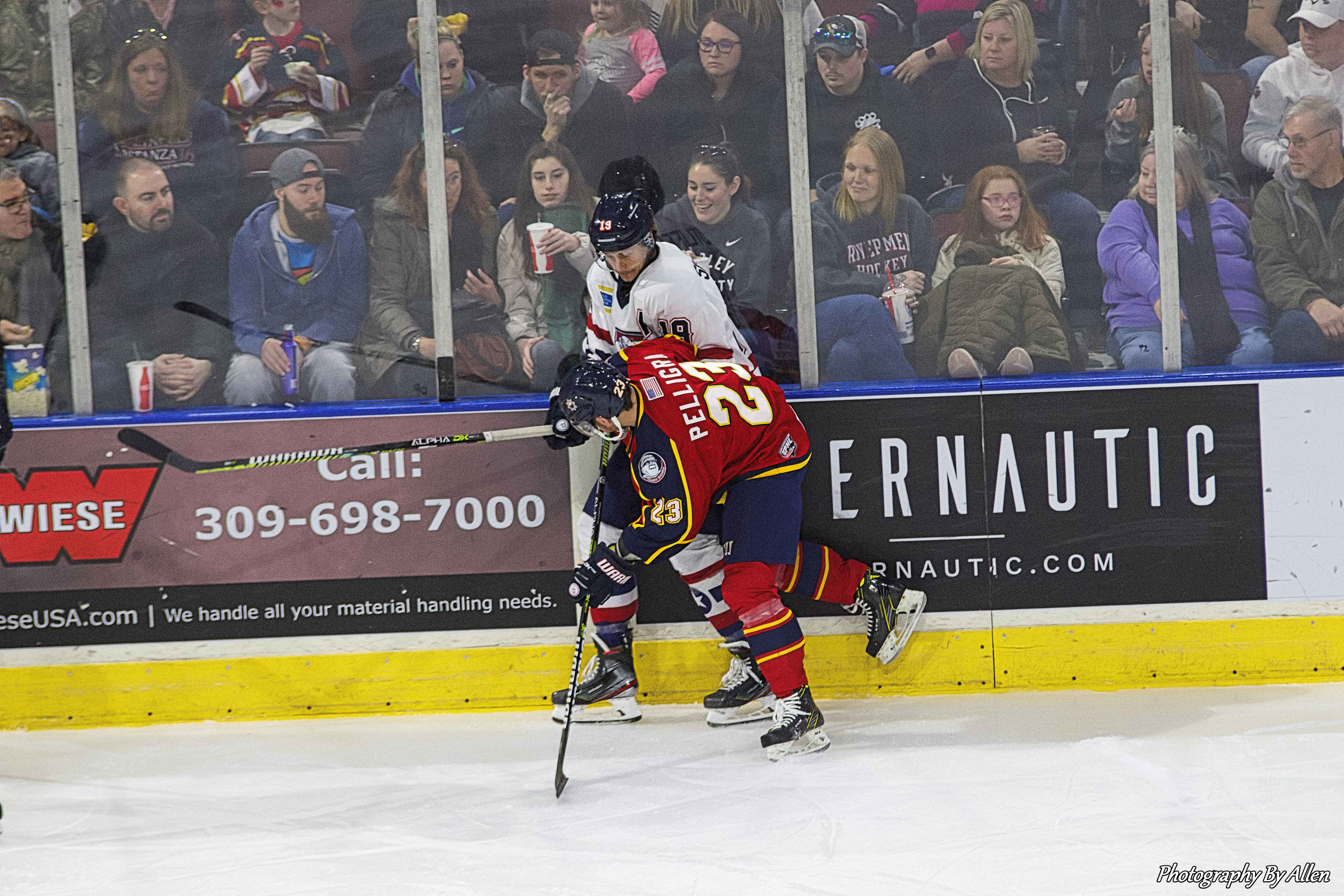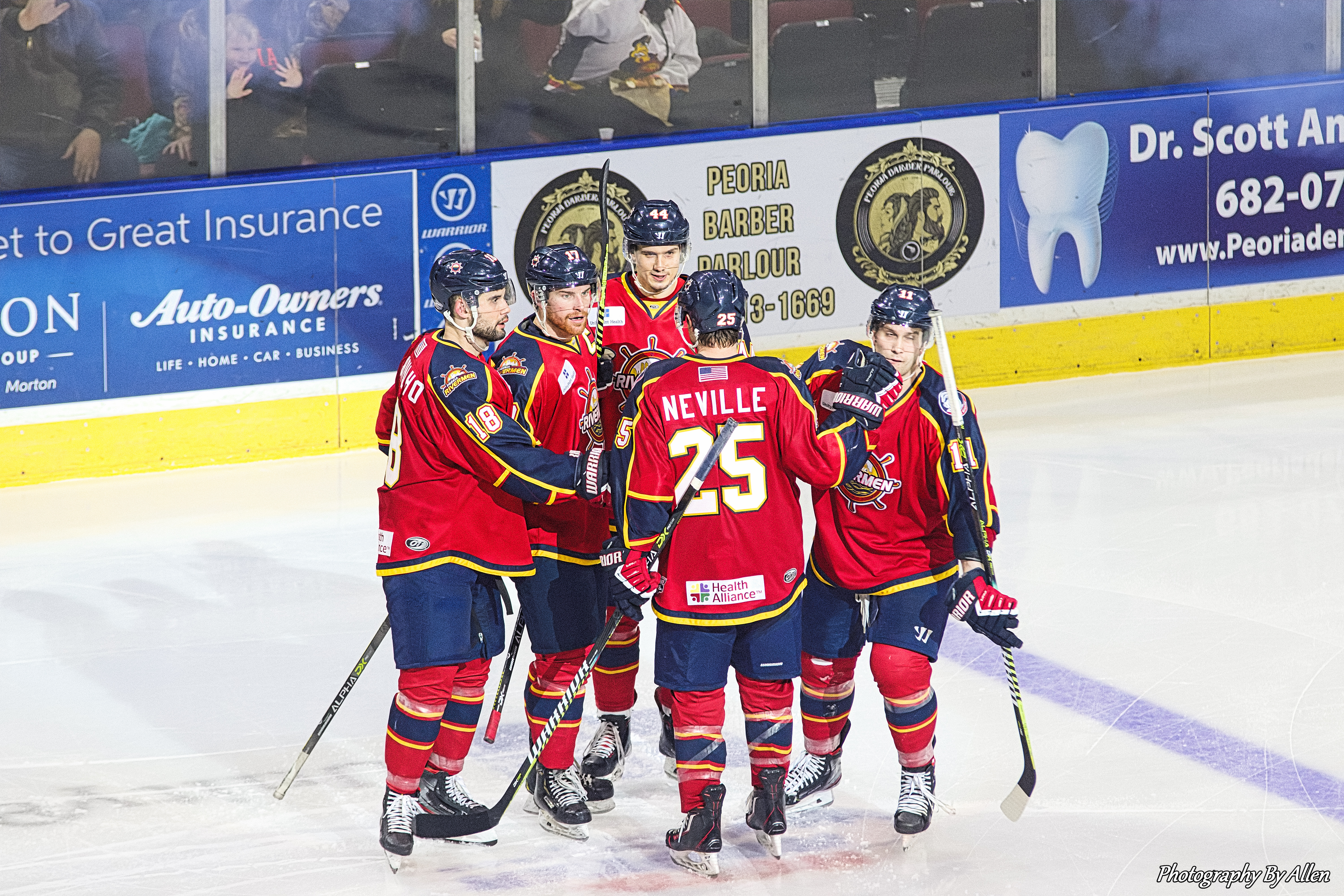 Peoria, IL – A combined 139 penalty minutes were handed to Peoria and Evansville, but goals from Zach Nieminen and Jordan Ernst helped the Rivermen take the weekend series with the Thunderbolts Sunday evening.