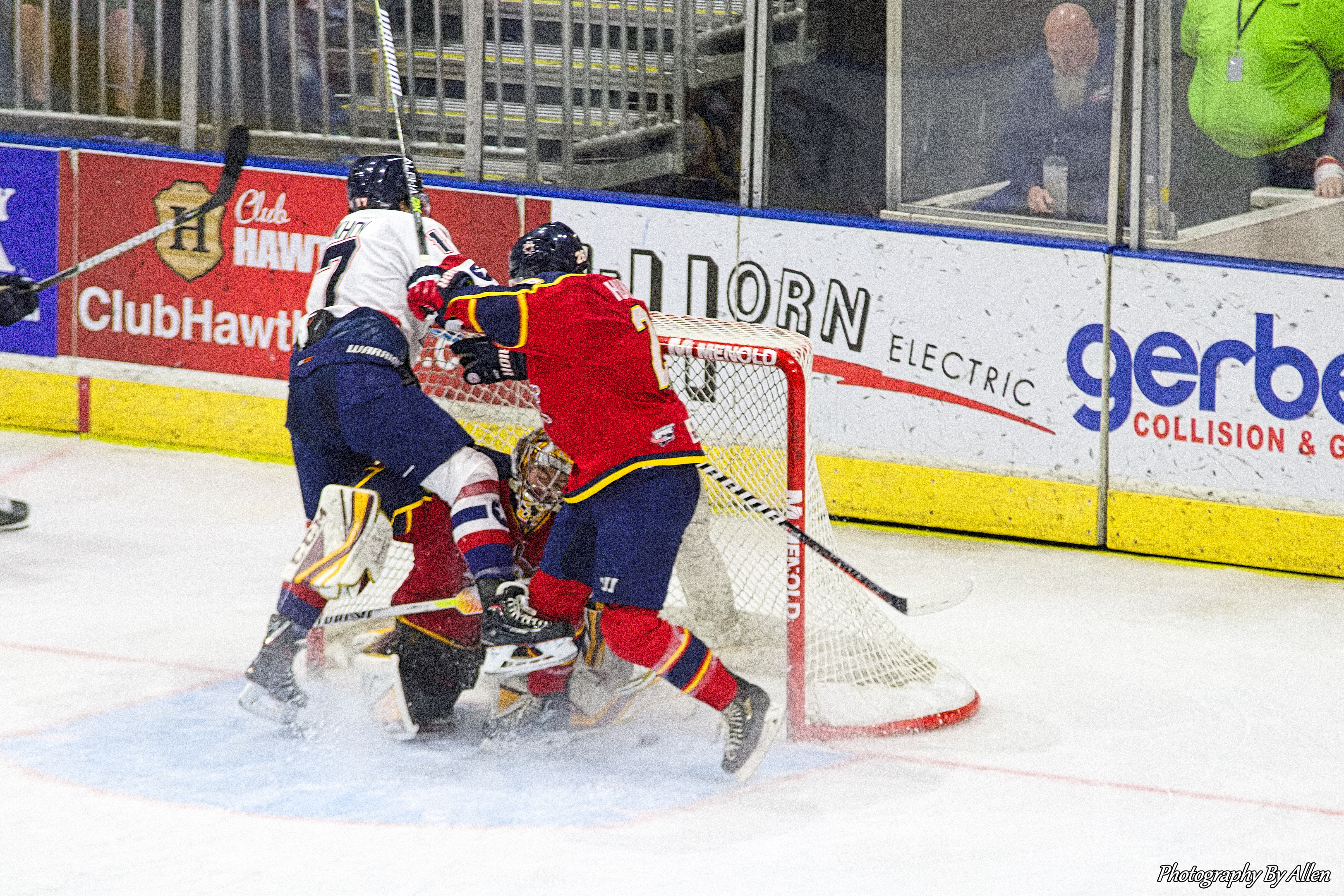 Ryland Pashovitz took the win in net with 22 saves. He is 5-1-1 on the year. Braeden Ostepchuk suffered the loss with a 21 save outing, falling to 11-5-2.