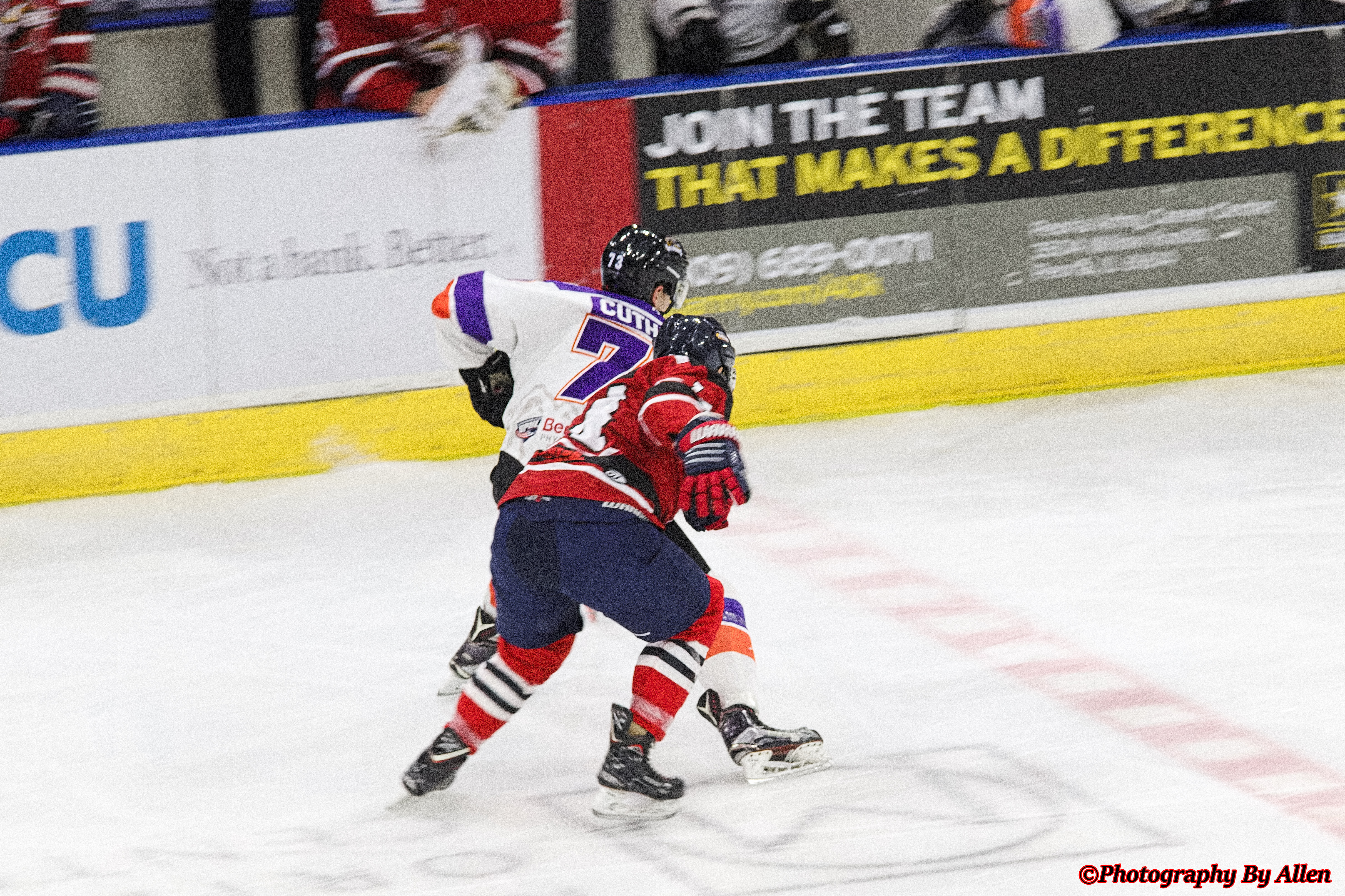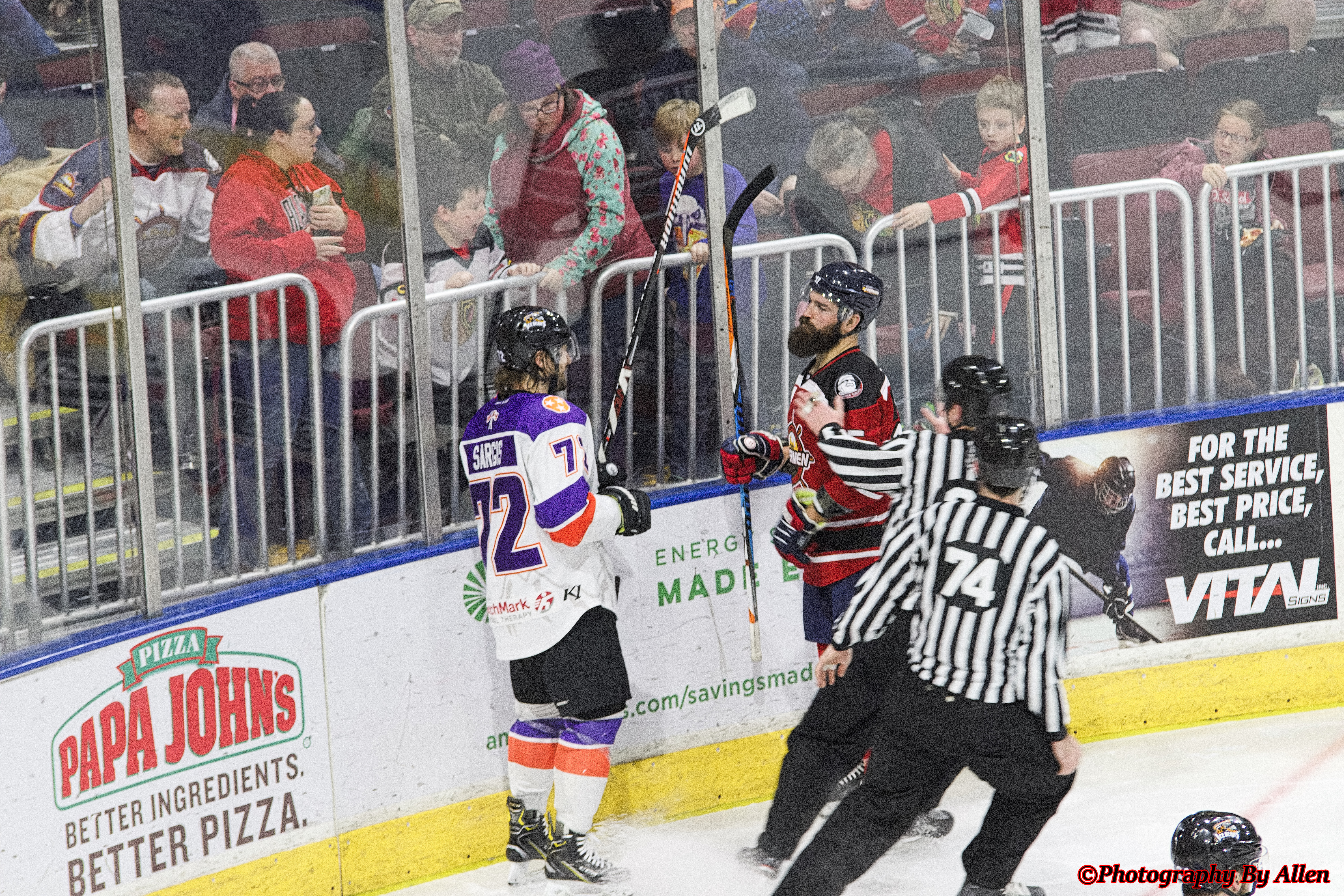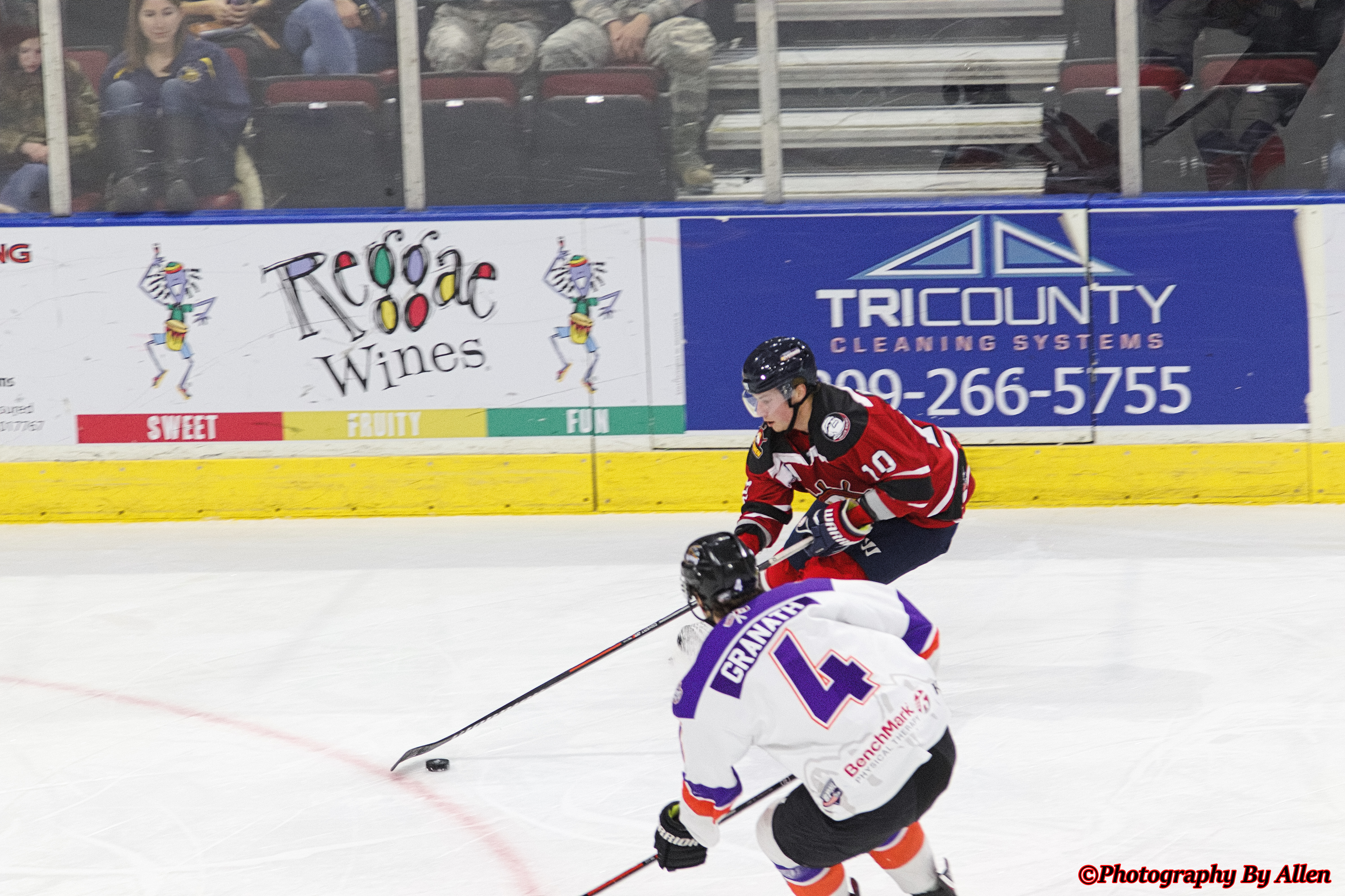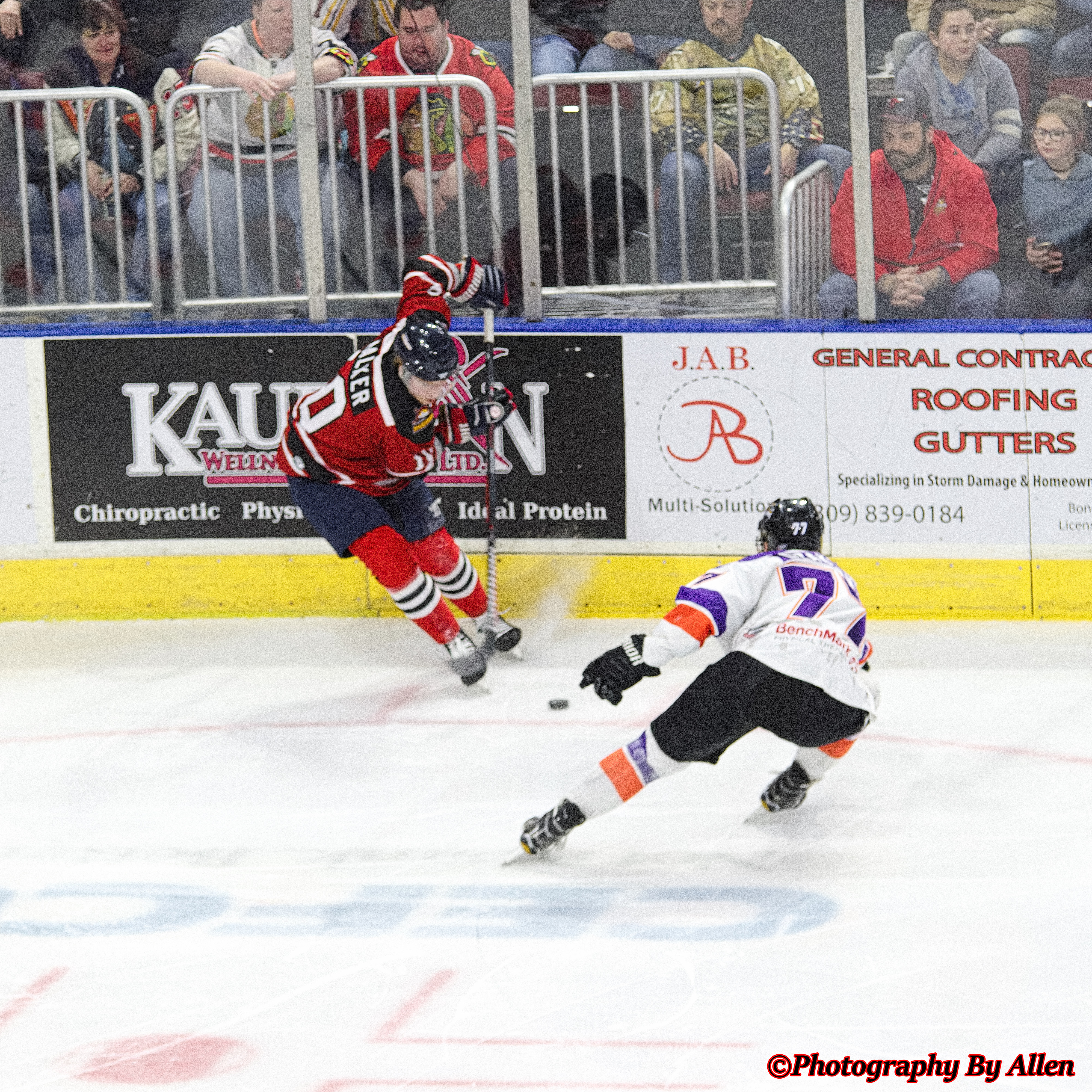 Peoria, IL – The Peoria Rivermen out-shot the Knoxville Ice Bears 38-18 but fell 2-0 to the Knoxville Ice Bears Saturday night at Carver Arena. Peoria’s second consecutive loss, and first regulation loss on home ice this season, drops them to 34-5-6 on the season before tomorrow afternoon’s weekend finale against the Quad City Storm.