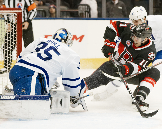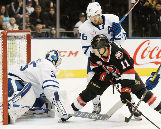 The Marlies tied it through Agostino’s 16th as Sens d-man Jack Dougherty threw the puck out front from the corner to Jeremy Bracco who centered to Agostino at 7:23.
